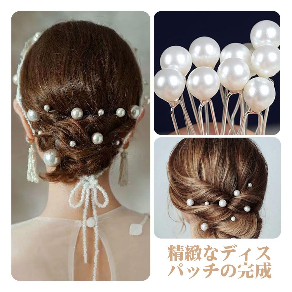 【材質】:パール ヘアピン髪飾り人工真珠と良質合金で作られ、割れたり曲がったりしにくく、表面に電気めっき技術を採用し、触感が滑らかで快適である。