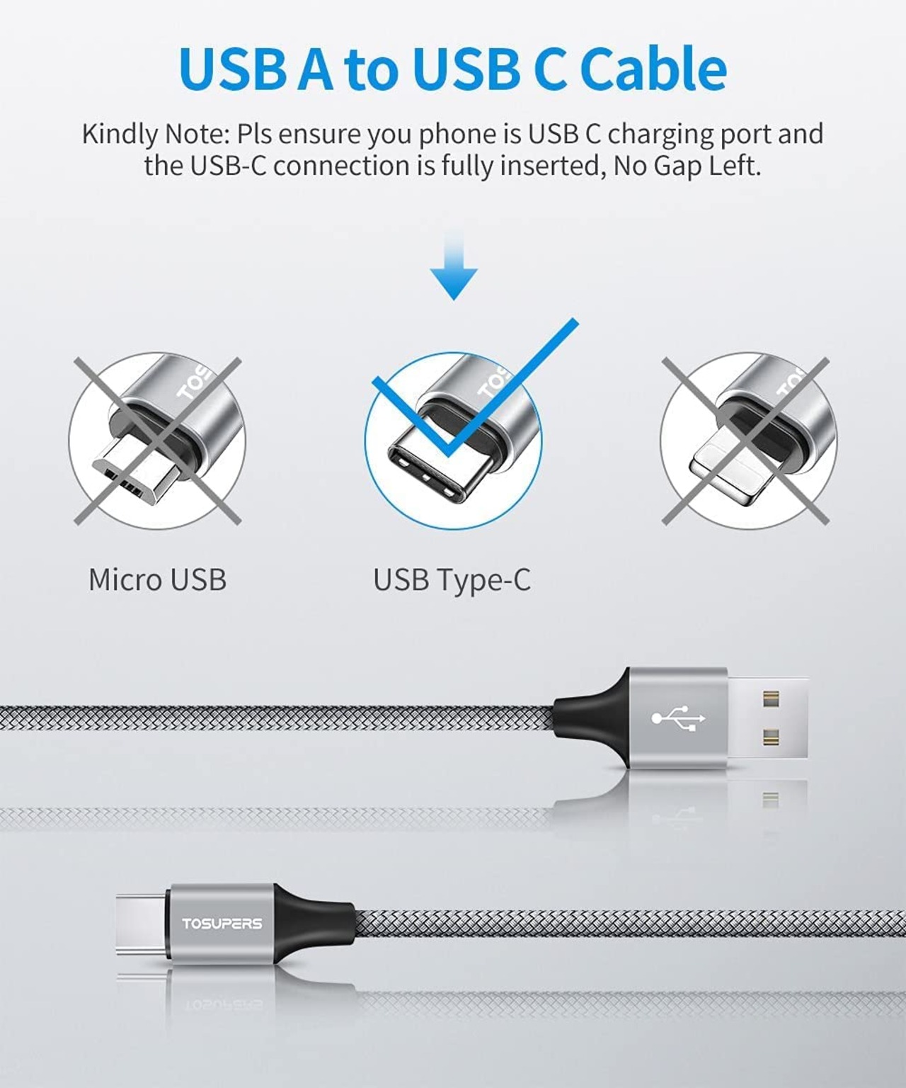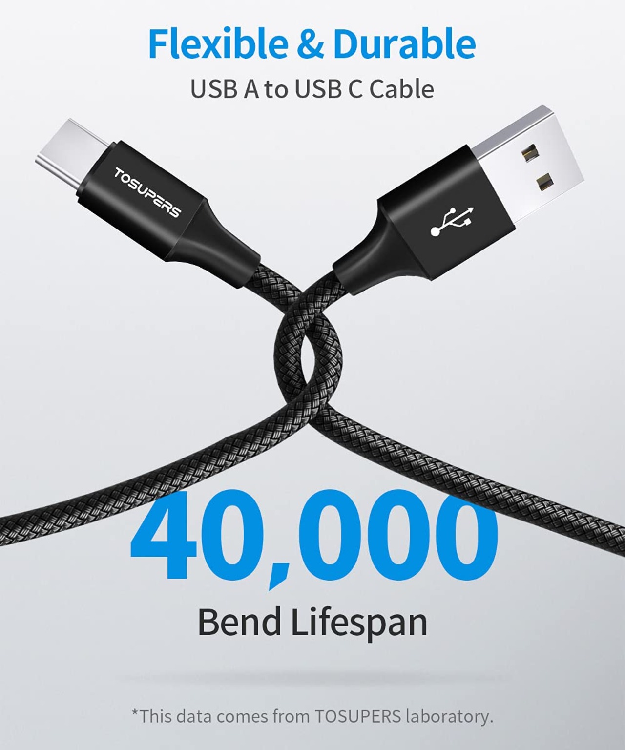 TOSUPERS 高耐久ナイロン USB-C & USB-A 2.0 ケーブル