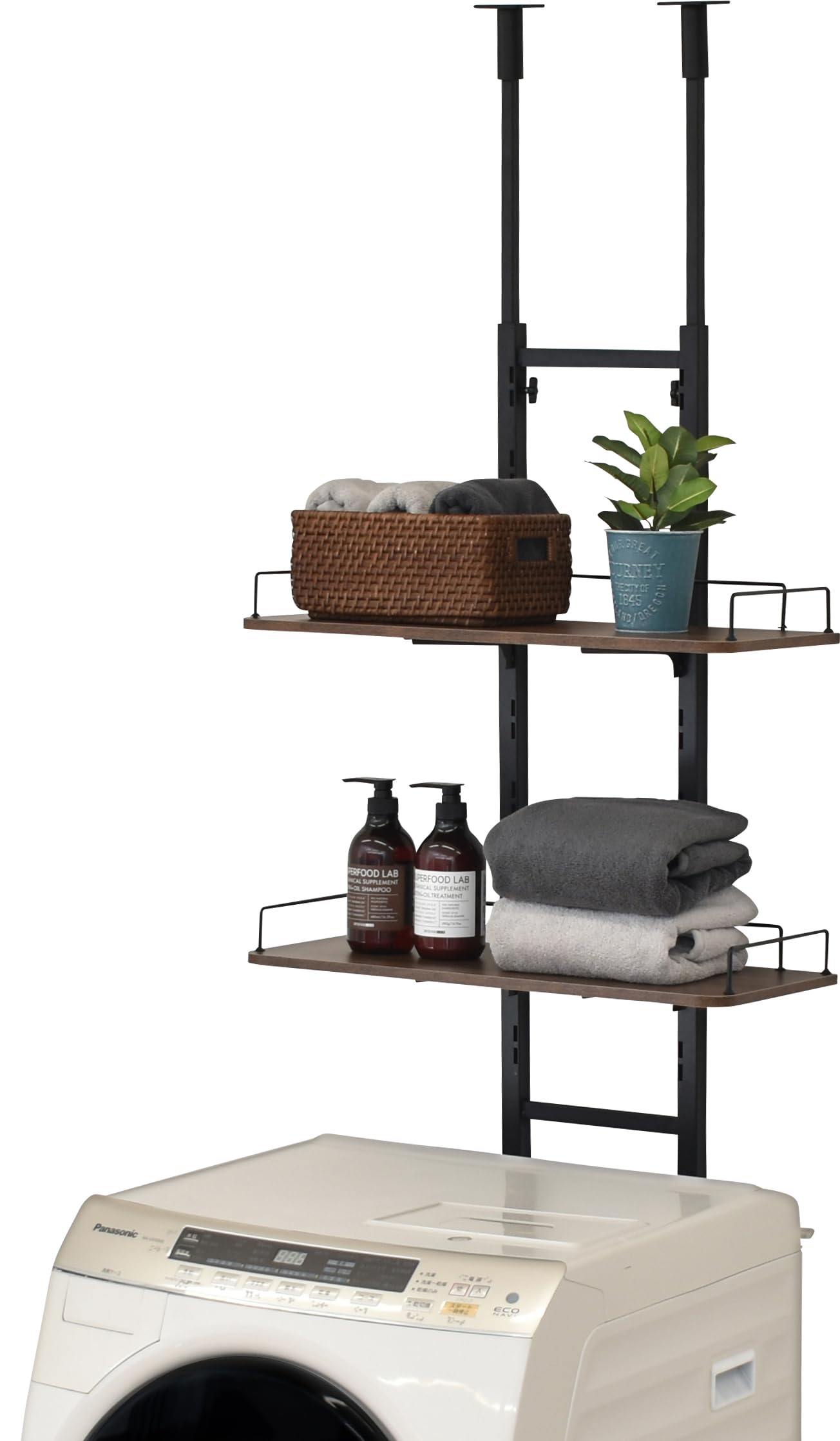 ekans(エカンズ) 棚付きランドリーラック 棚2段 突っ張りタイプ LSH-T200BW (ブラック×ウォールナット)