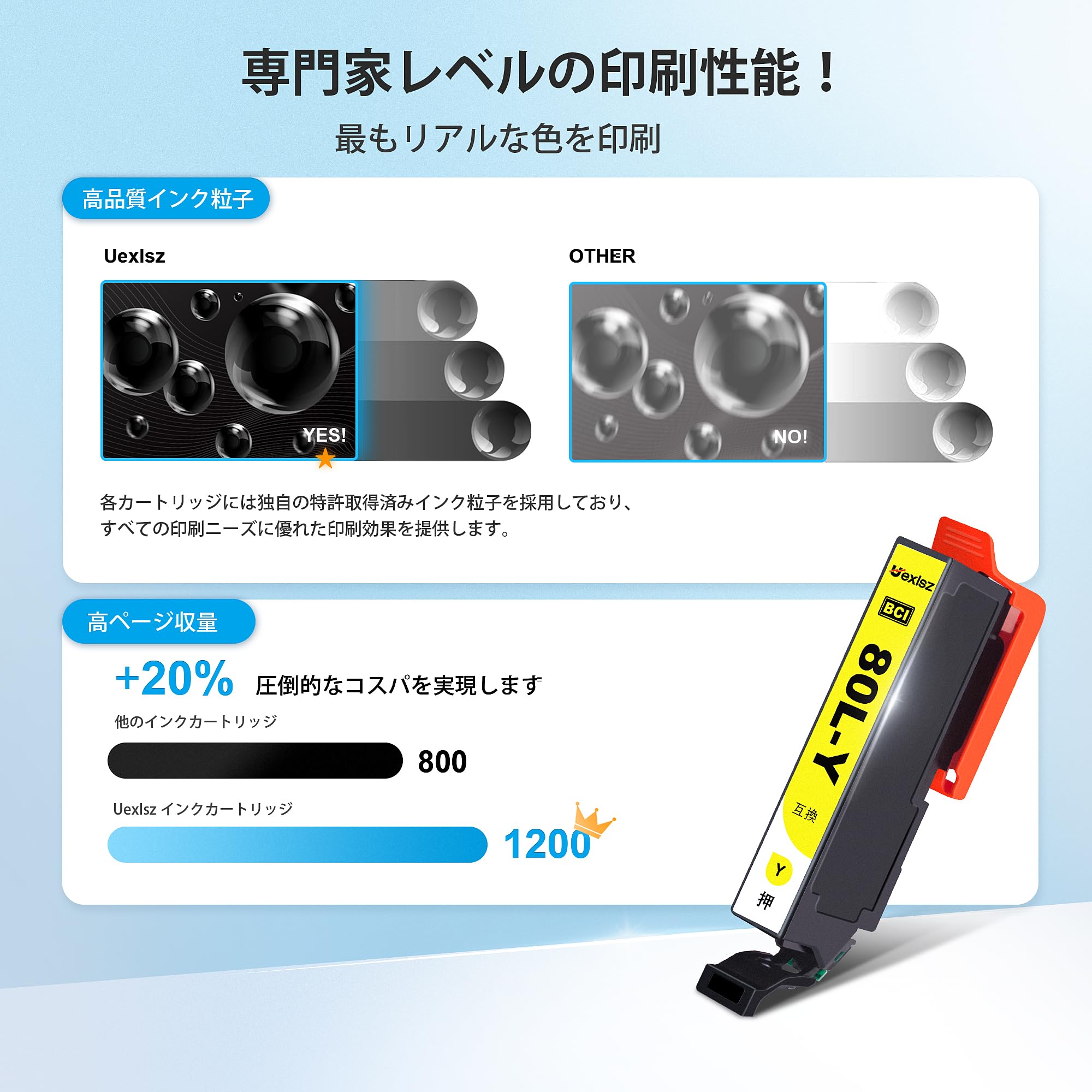 Uexlsz IC6CL80L インク とうもろこし Epson用 インクカートリッジ エプソン 80l エプソン対応 epson インクカートリッジ 80L IC6CL80L + ICBK80L (6本セット+黒1本) 合計7本 とうもろこし 大容量 icbk80l ep707a インク プリンター
