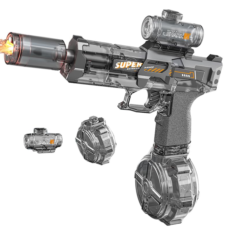 【夏の最新電動式LEDウォーターガン】2025夏の最新デザインで、普通の水鉄砲と違い、電動連射式LED灯光噴火式のデザインを採用し、トリガーを引くだけで水を高速で穏やかに連発発射できる。同時に激しいシューティングのフラッシュ効果が雰囲気感あふれる。トリガーを引くと攻撃音と共に光ります!夜間に使うと、光る水鉄砲で真夏の夜を盛り上げよう!