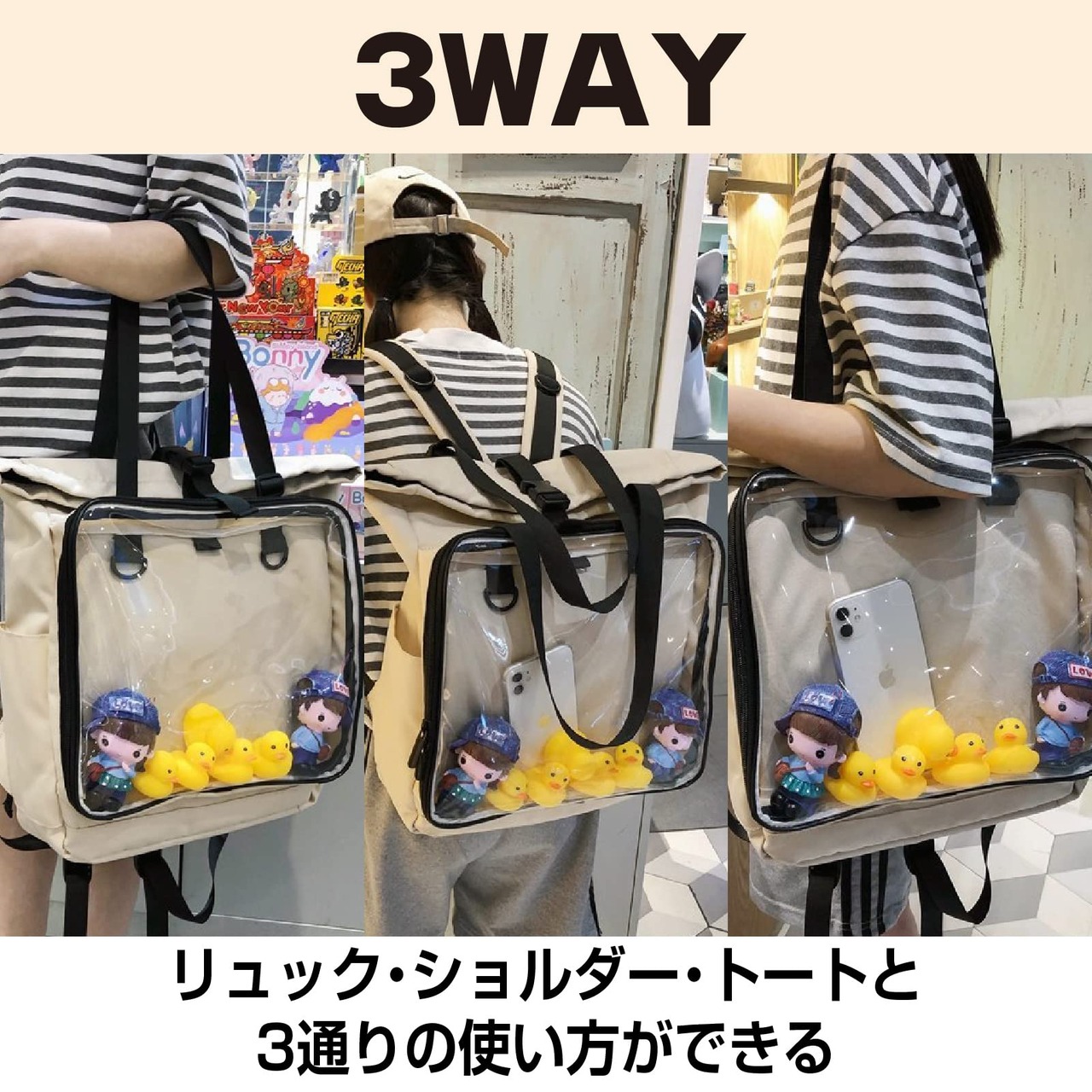 [CAWKAY] 痛バッグ リュック 3WAY トート ショルダー 透明バッグ 推し 見せバッグ 缶バッジ アクキー デコ ぬいぐるみ オタク