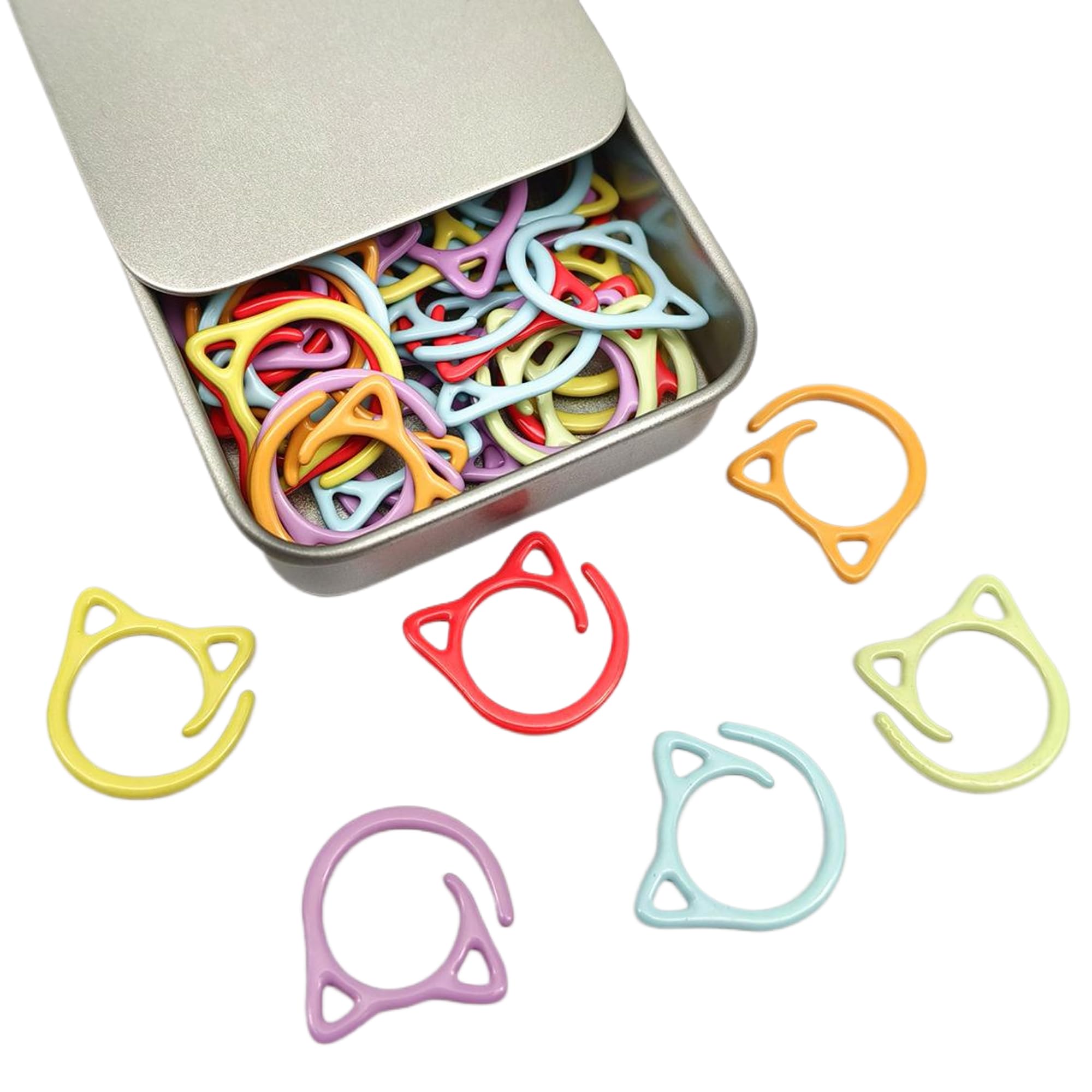 DEVENTORZ ステッチマーカー 編み物 マーカー 6色24個 豊かな色彩 段数マーカー 段数リング かぎ針編 可愛い 猫 衣類のDIY縫製用 編み物ツール 編み物 道具 携帯に便利 手芸 毛糸 収納ケース付き