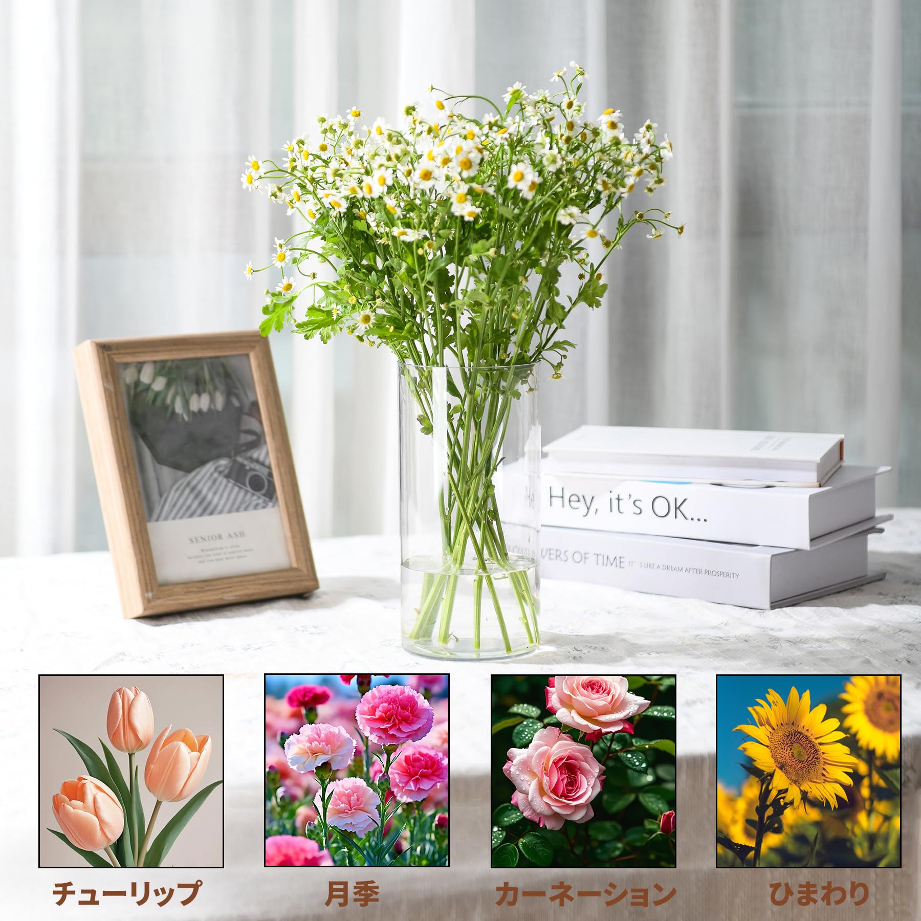 【高品質素材】花瓶は良質なアクリル材料で作られ、ガラスのような繊細で美しい透明感を持ちながら、軽くて、丈夫で耐久性があり、割れにくく、清潔にしやすいです。透明な瓶体は内容物の可視性を最大限に高めることができ、花瓶を通じて中の花や他のものの美しさを生き生きと見せることができます。