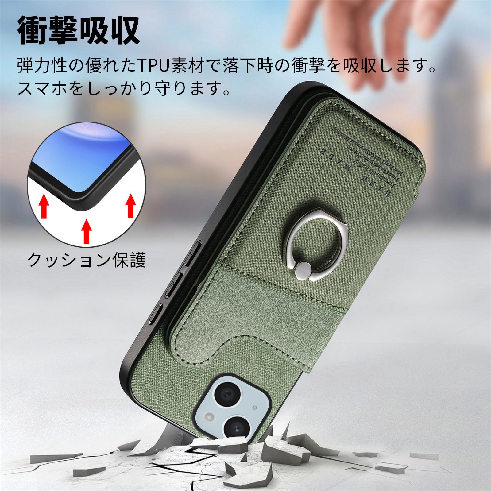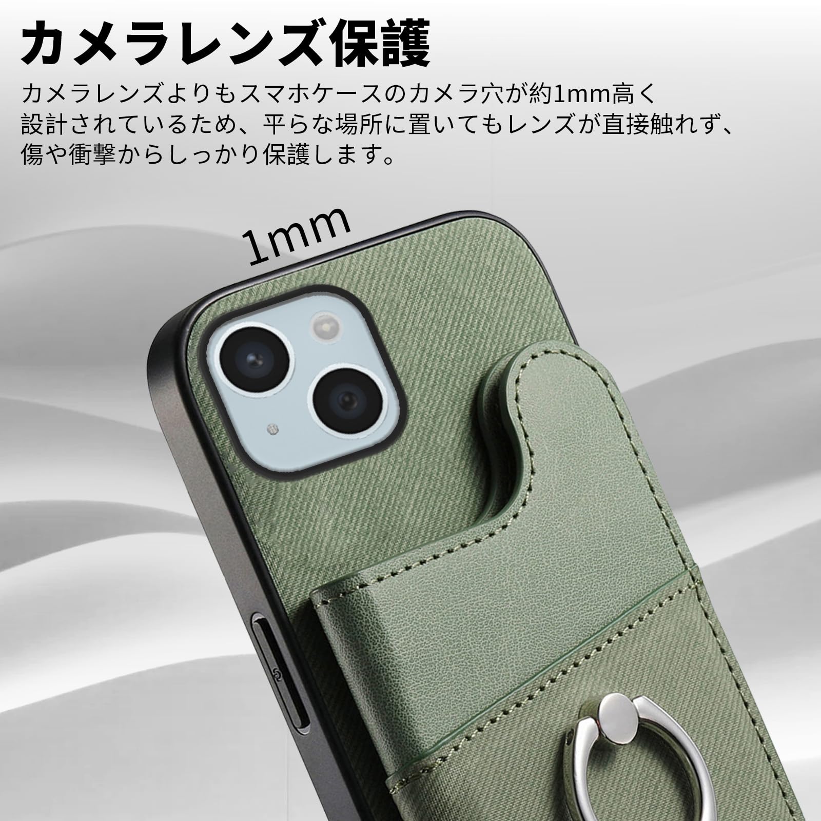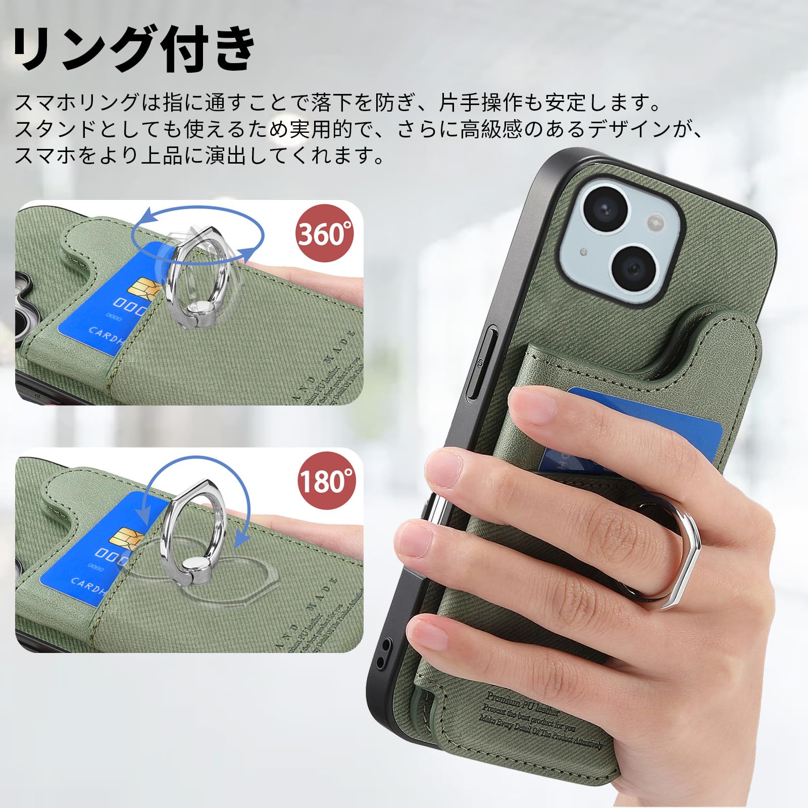 iPhone 15 ケース 手帳型 リング付き アイフォン15 スマホケース iphone15 手帳型 カバー 耐衝撃 背面 カード収納 あいふおん15ケース いphone15 カバー PUレザー 薄型 アイホン15 スマホカバー 財布付き カメラ保護 スタンド機能 RFIDブロッキング 360°回転 リング スナップボタン TPU 落下防止 おしゃれ 6.1インチ対応 グリーン