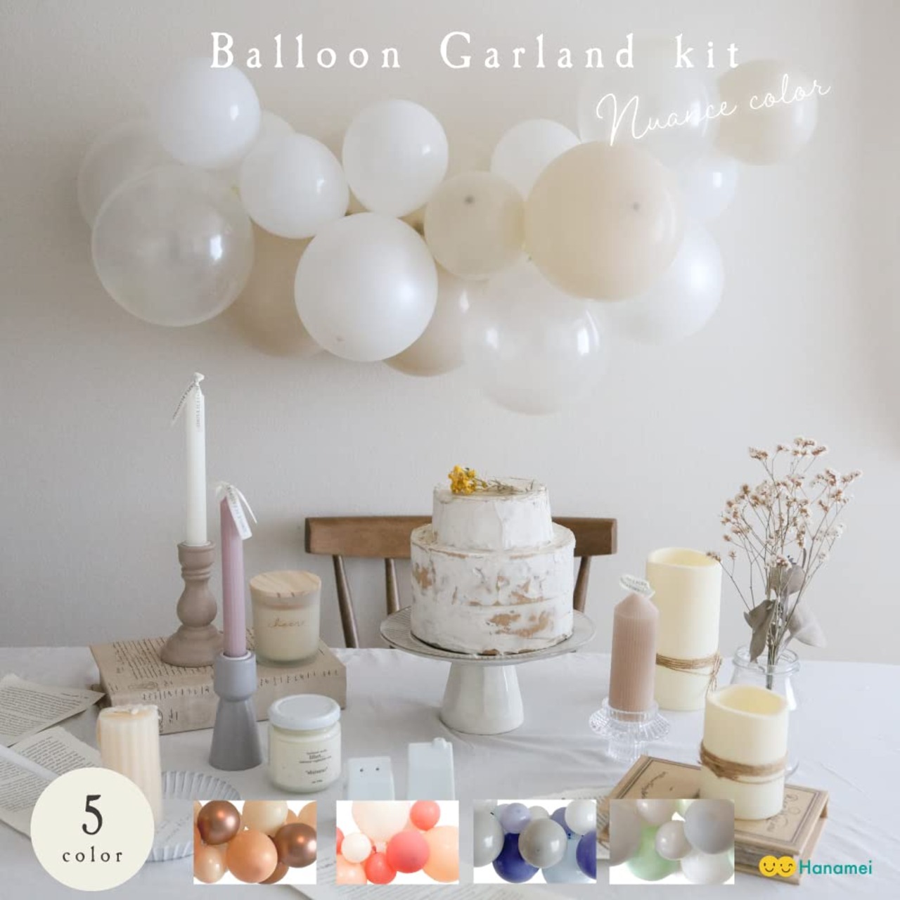 Hanamei ハナメイ 誕生日飾り付けセット バルーンガーランドキット 誕生日パーティー 結婚式 ウェディング 装飾 バースデー 予備風船あり (クリームラテ)