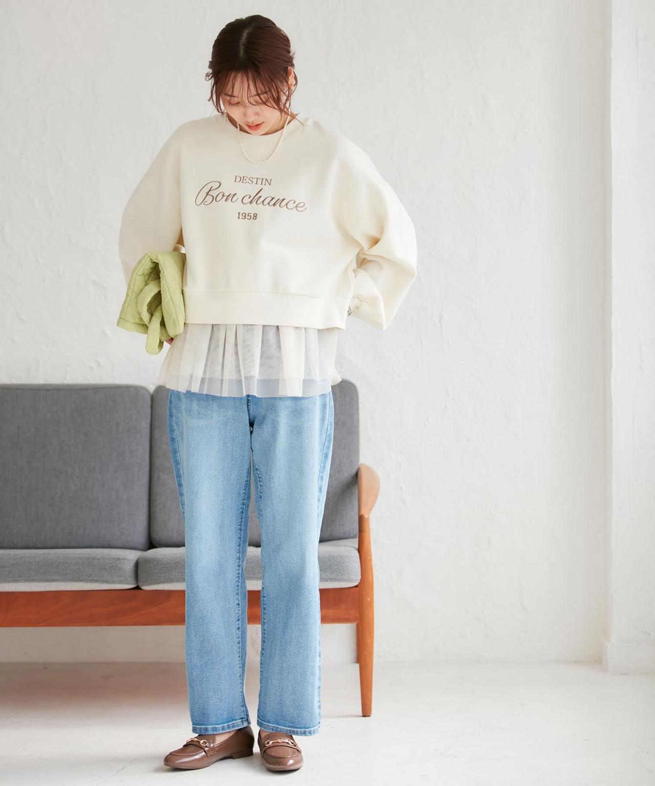 デザイン・シルエット : 裾をチュールのティアードで切り替えたノースリーブトップス。ROPE' PICNICオリジナルの「着丈が選べる」シリーズで、2パターンの着丈をラインナップ。
