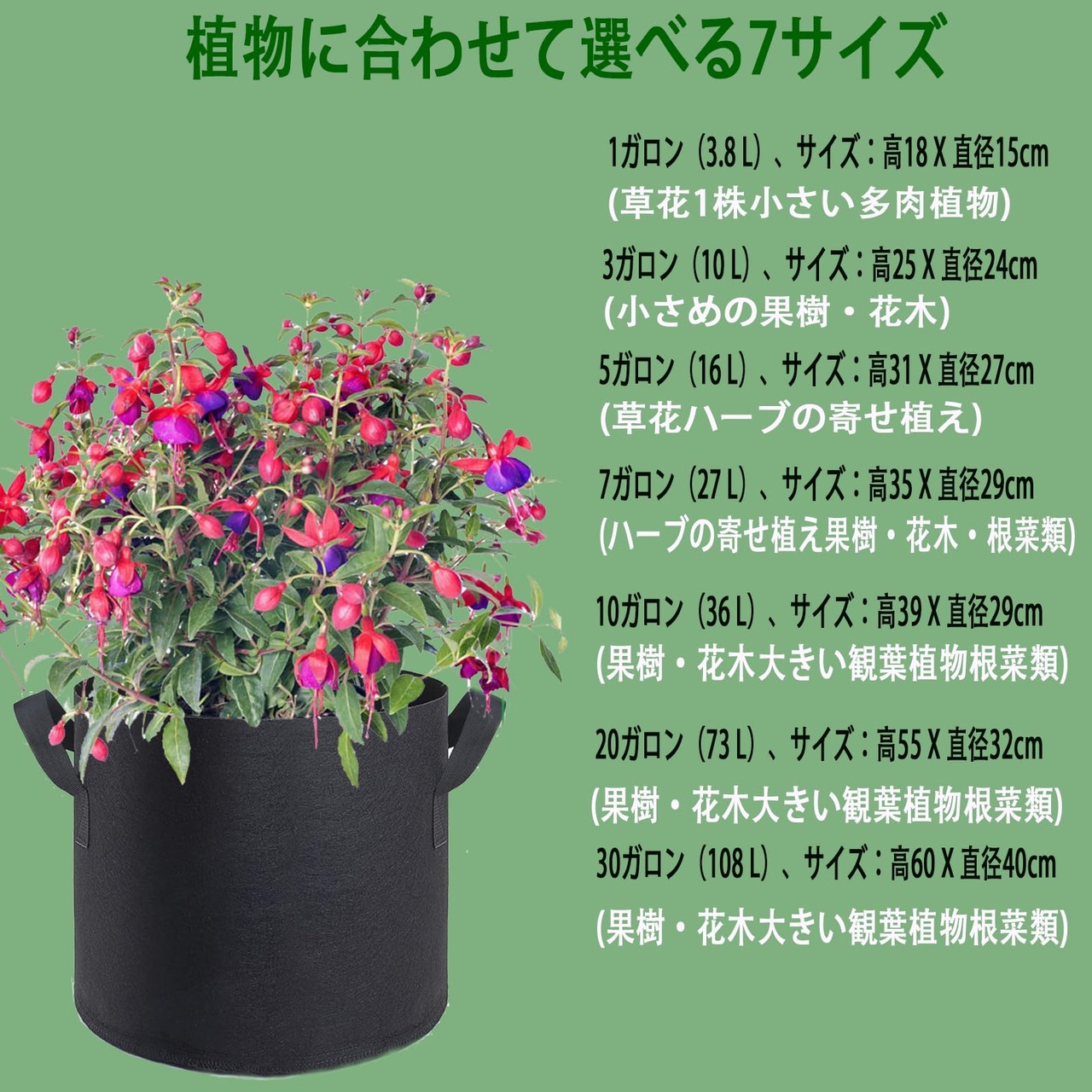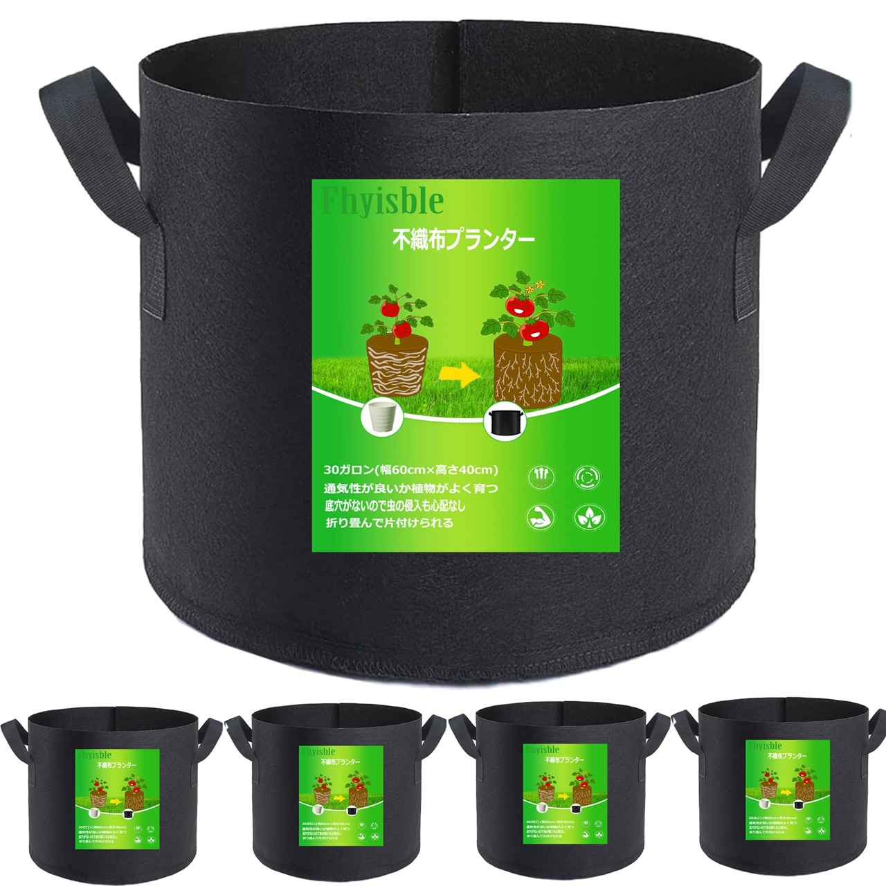 不織布プランター 栽培袋 布鉢 植木鉢 不織布ポット 30ガロン5枚入 幅60cm×高さ40cm 108リットル 軽い 家庭菜園 野菜 栽培袋 布袋 布鉢 (30ガロン5枚入)