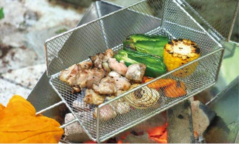 全面が網面仕様で食材をこんがりと焼ける直火焼きメッシュグリル。食材を炙る・燻すなど多用途な調理に使えて利便性が抜群。直火焙煎のコーヒーや、キャンプ時のポップコーン作りもこの1台で完結。キャンプの調理時にあったら嬉しいアイテムです。
