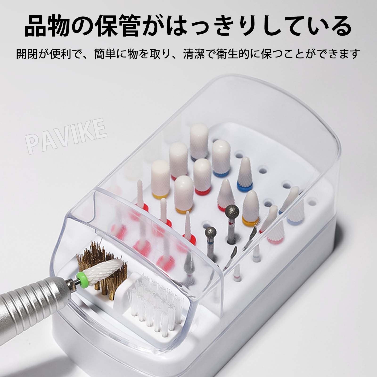 PAVIKE ネイルビット ホルダー クリーニングブラシ付き 30穴 大容量 防塵 透明 ネイルマシン ビット ネイルドリルビット ホルダー ネイルドリル