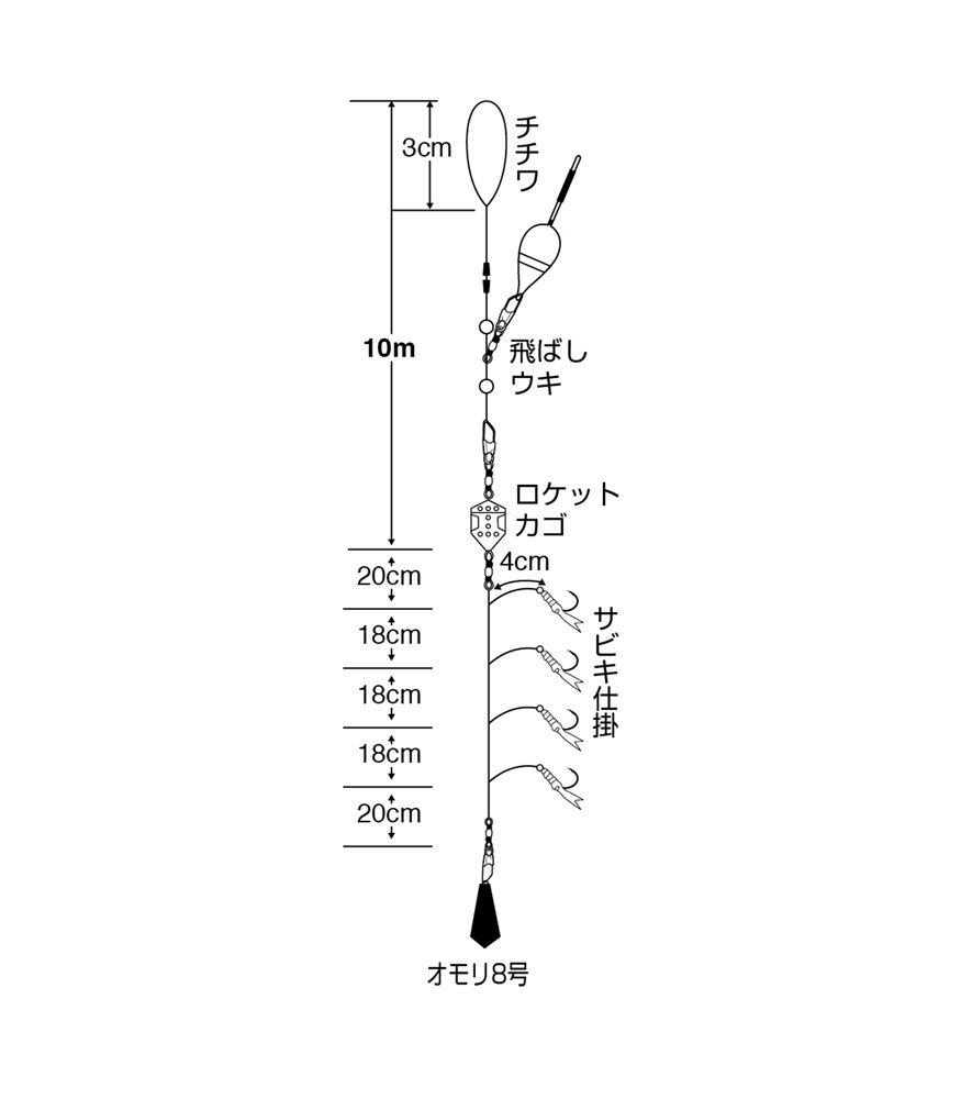 ◎セットサビキ 堤防仕掛 ●S-553 ウルトラ簡単飛ばしサビキ(上カゴ式) ・道糸付きで仕掛けセットがウルトラ簡単な飛ばしサビキです。