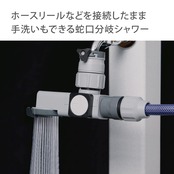 1つはホースリールに、もう1つは手や道具を洗いたい時に便利なかんたん接続分岐シャワー。