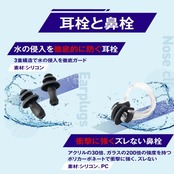 【五点セット】スイミングゴーグル、 防水ケース、スイムキャップ 、鼻ベルトと耳栓が付き、スイミングにとって必要なものがお買い得の値段で一気に手に入ることが可能です。