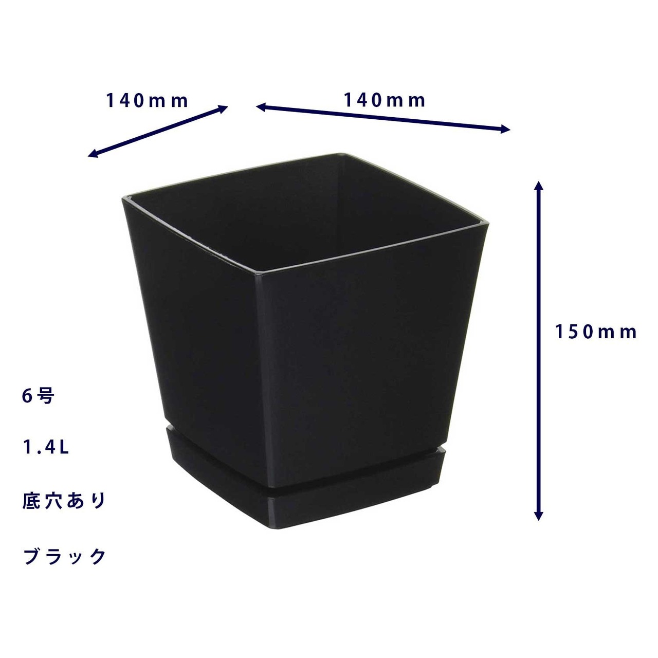 大和プラスチック 鉢・プランター クエンチローポット(プレート付) 6号 140×140×H150 ブラック