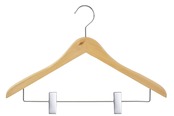 サワフジ 洋服ハンガー 木製ハンガークリップ付5本組 クリア 幅430mm スカート スラックス パンツ ズボン すべり止め付 天然木 薄型 AWT-343C-5P