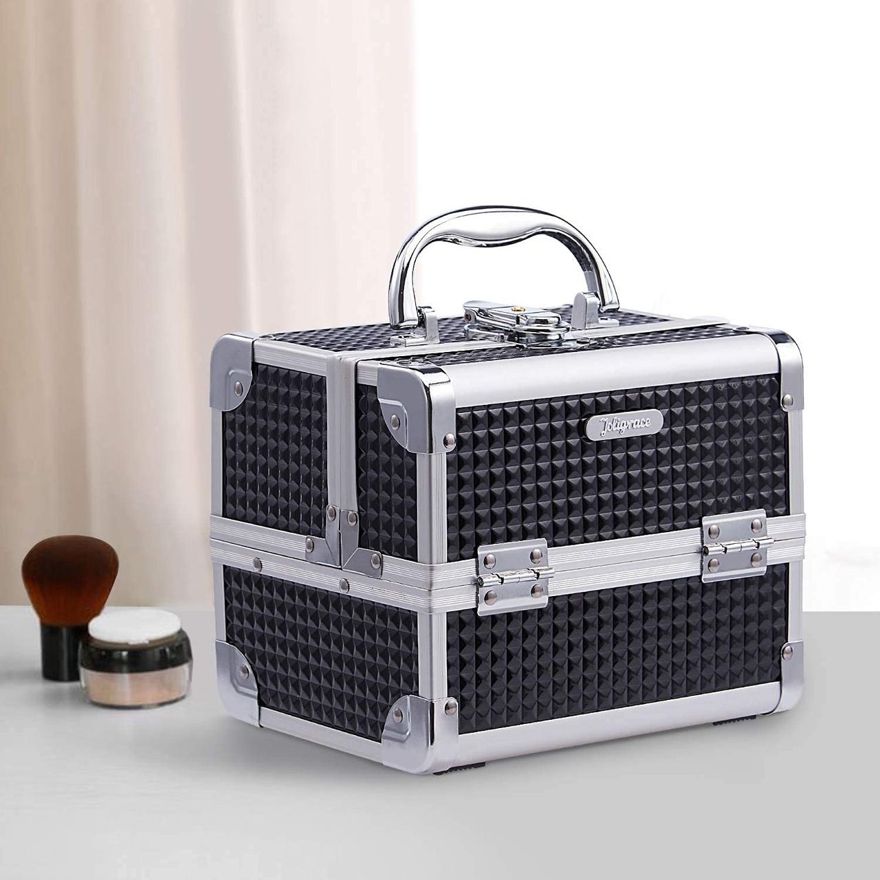 Hapilife コスメボックス 鏡付き スライドトレイ メイク用品収納 プロ仕様 小型 化粧箱 (ブラック-ダイヤモンド)