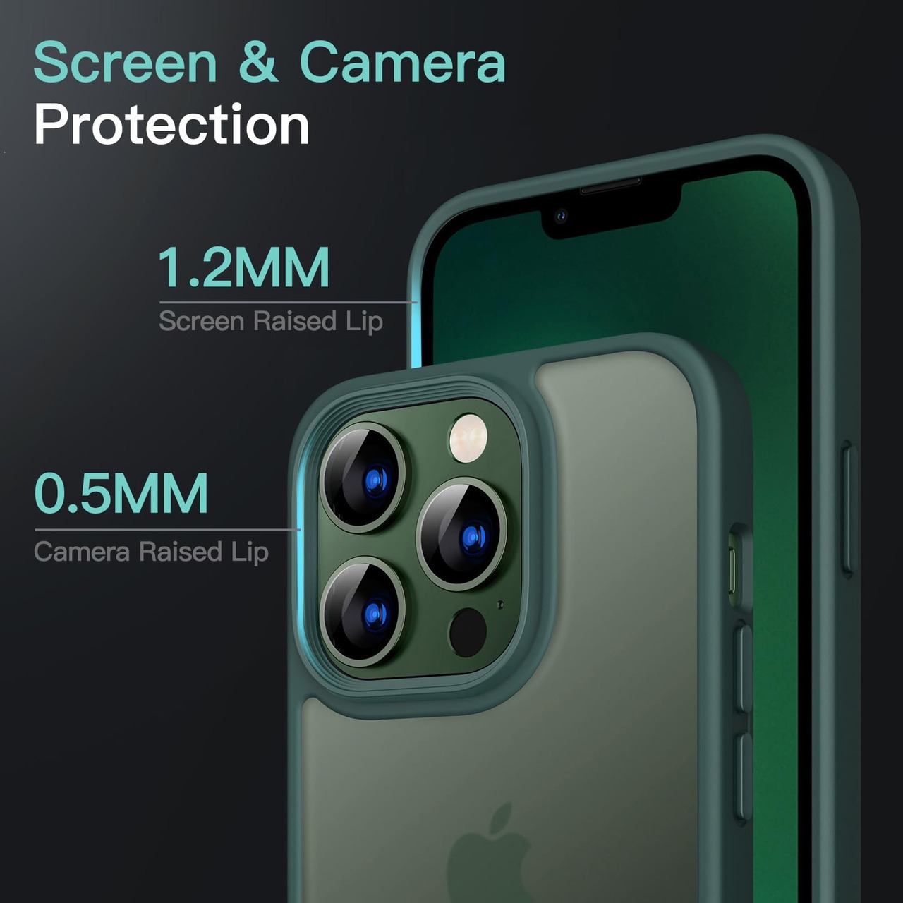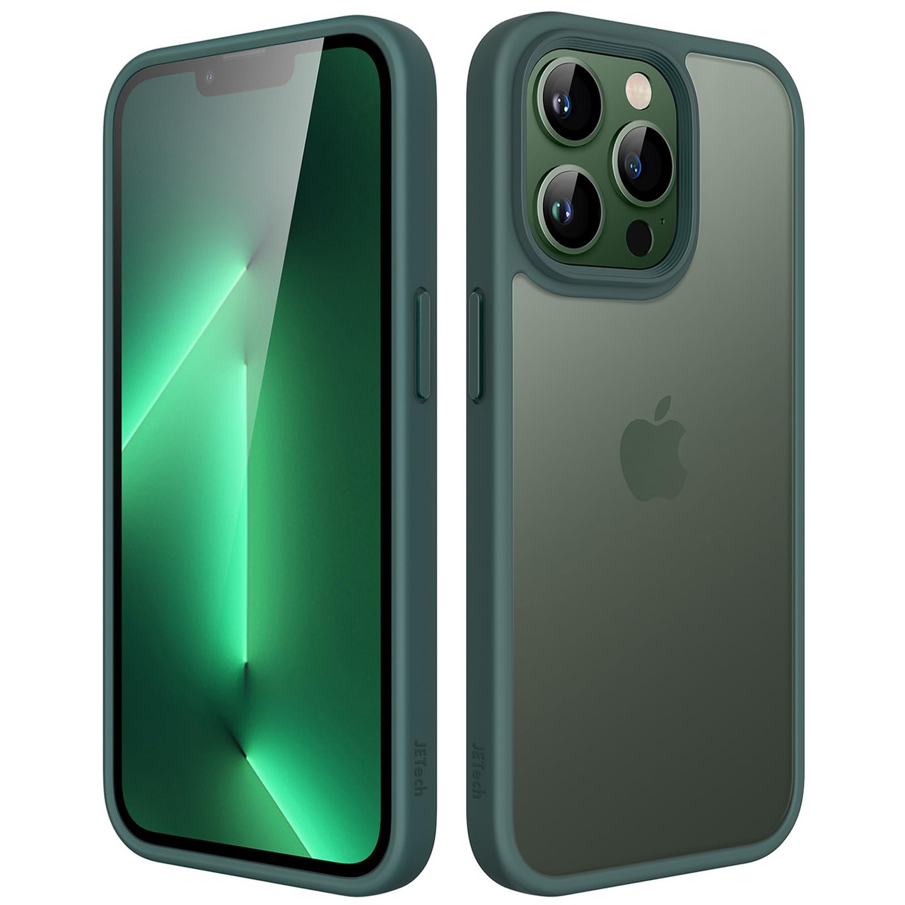 JETech マットケース iPhone 13 Pro 6.1インチ 耐衝撃性ミリタリーグレードの落下防止 つや消しの半透明の背面電話カバー 指紋防止 (濃い緑色)