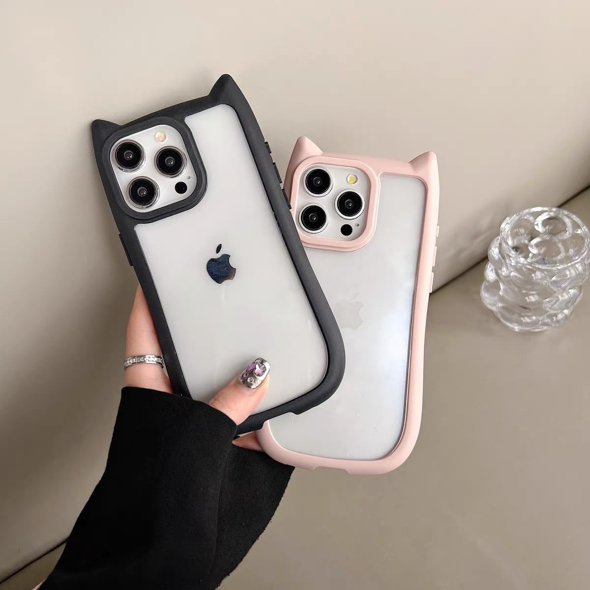 iPhone 15 用 シリコン ケース 可愛い 猫耳 アイフォン ケース 透明 携帯電話カバー レンズ 女性向け 柔らかい