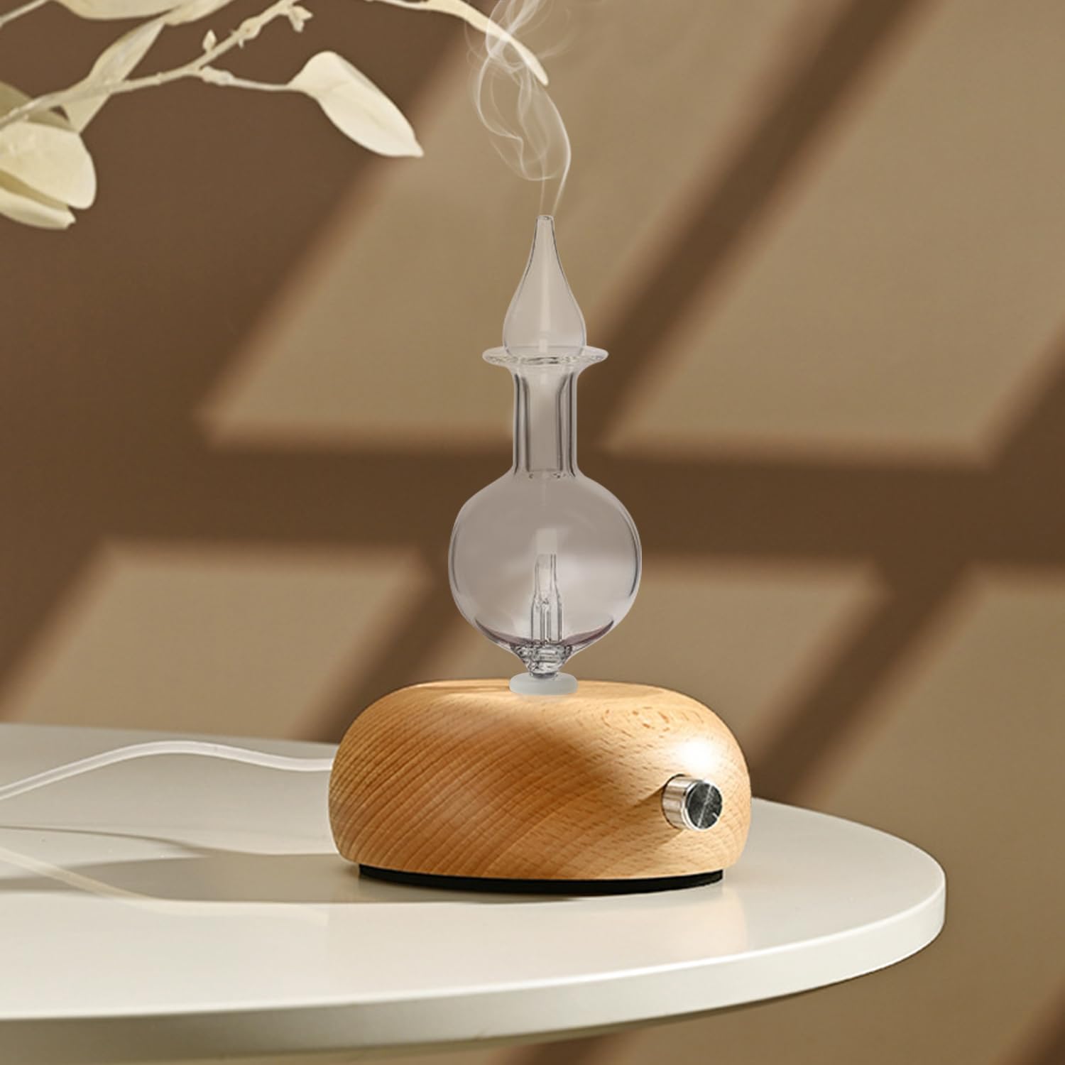 YUYAKESHIアロマディフューザー 水や熱を使わない 木製台座 ガラス容器 ネブライザー 細口 エッセンシャルオイルディフューザー USB式 25ml容量(原木色・丸いボールガラス) | geisha Cat*