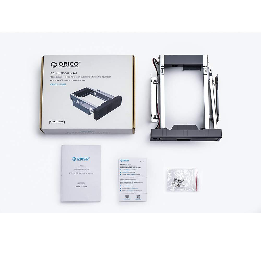 ORICO 5.25インチベイ CD-ROM 内蔵専用 HDDケース 3.5インチ SATA HDD対応 ハードディスクケース ツール不要 簡単着脱 デスクトップPC用 ドライブケース HDD変換ブラケット 電源スイッチ付 ブラック 1106SS-V1-BK | geisha Cat*