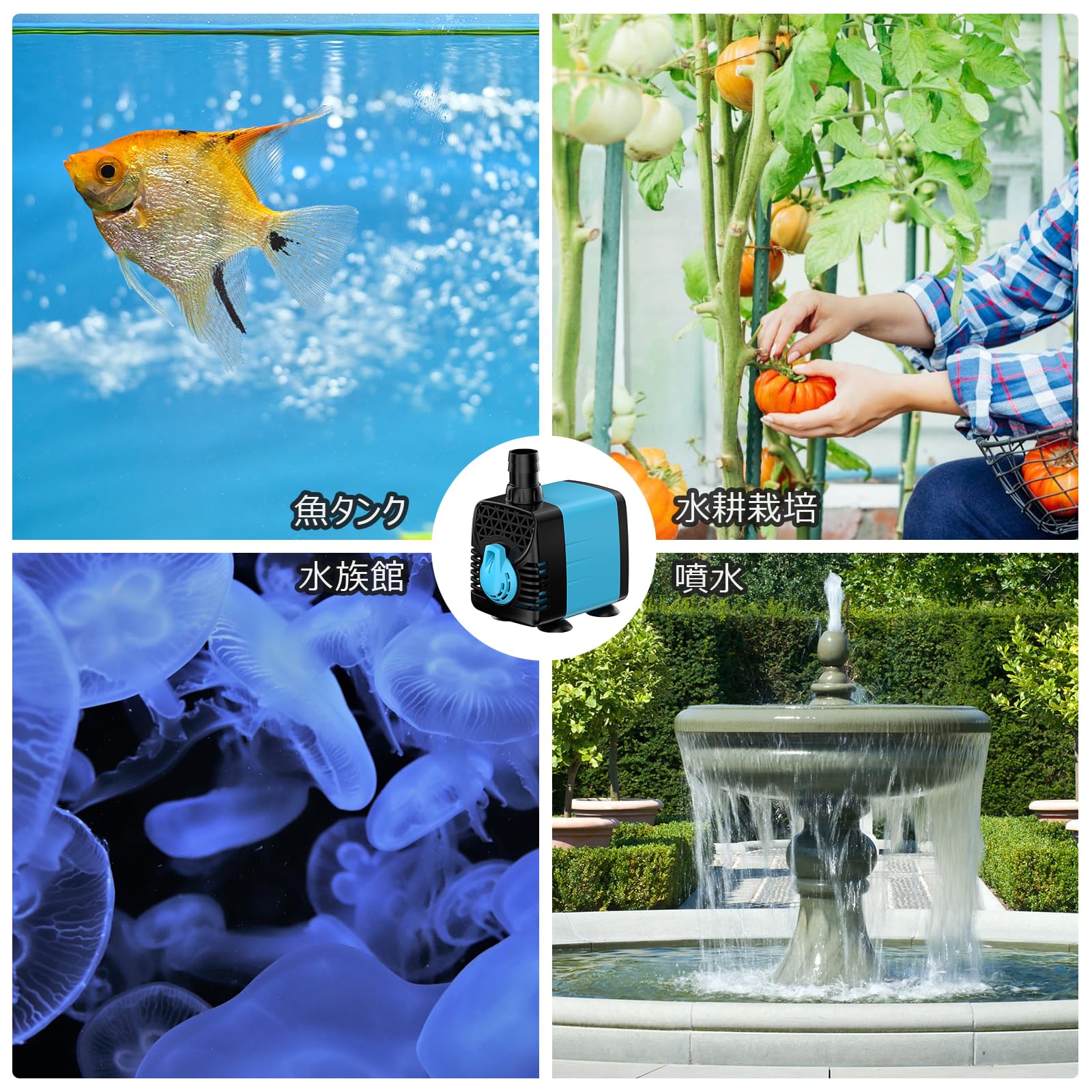 【ご注意】12Wと20Wのポンプは必ずポンプ本体全部を水没しなければならないです。もし、動作中に水没状態を維持しなければ、モーターを焼け焦げる可能性が高いです。20Wのポンプは水陸両用なので、水を離れるなら正常に作動できます。