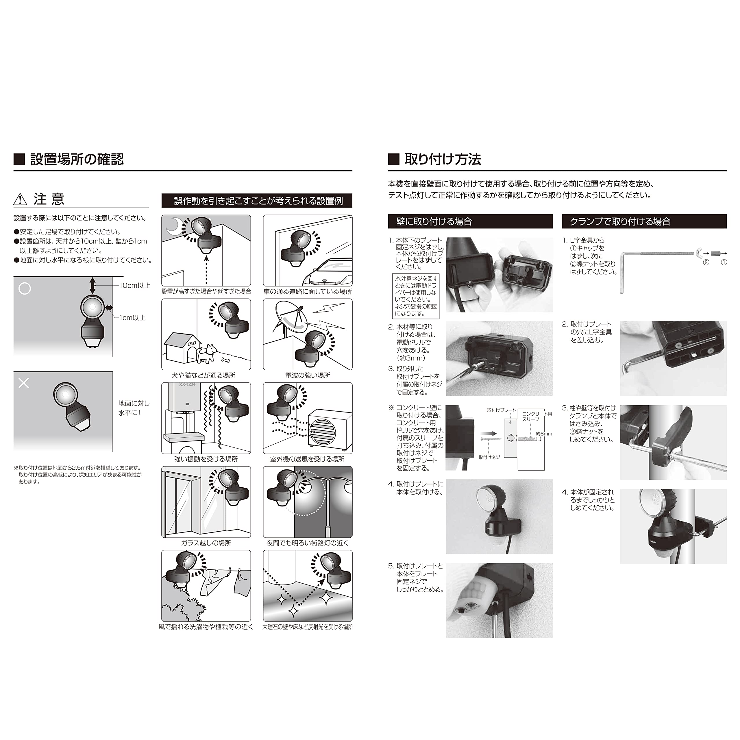 センサー探知方式/探知エリア:赤外線探知方式/約3m時約180°・約12m時約90°