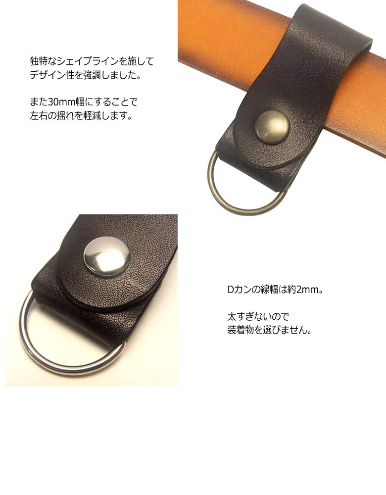 栃木レザー仕様 スタンダードなベースグレード仕様のシェイプデザインのベルトループキーホルダーです。上質なツヤのある革にDカン金具がポイント。デザインと機能性を考えて作られた職人が一つ一つ丁寧に作った国産品です。