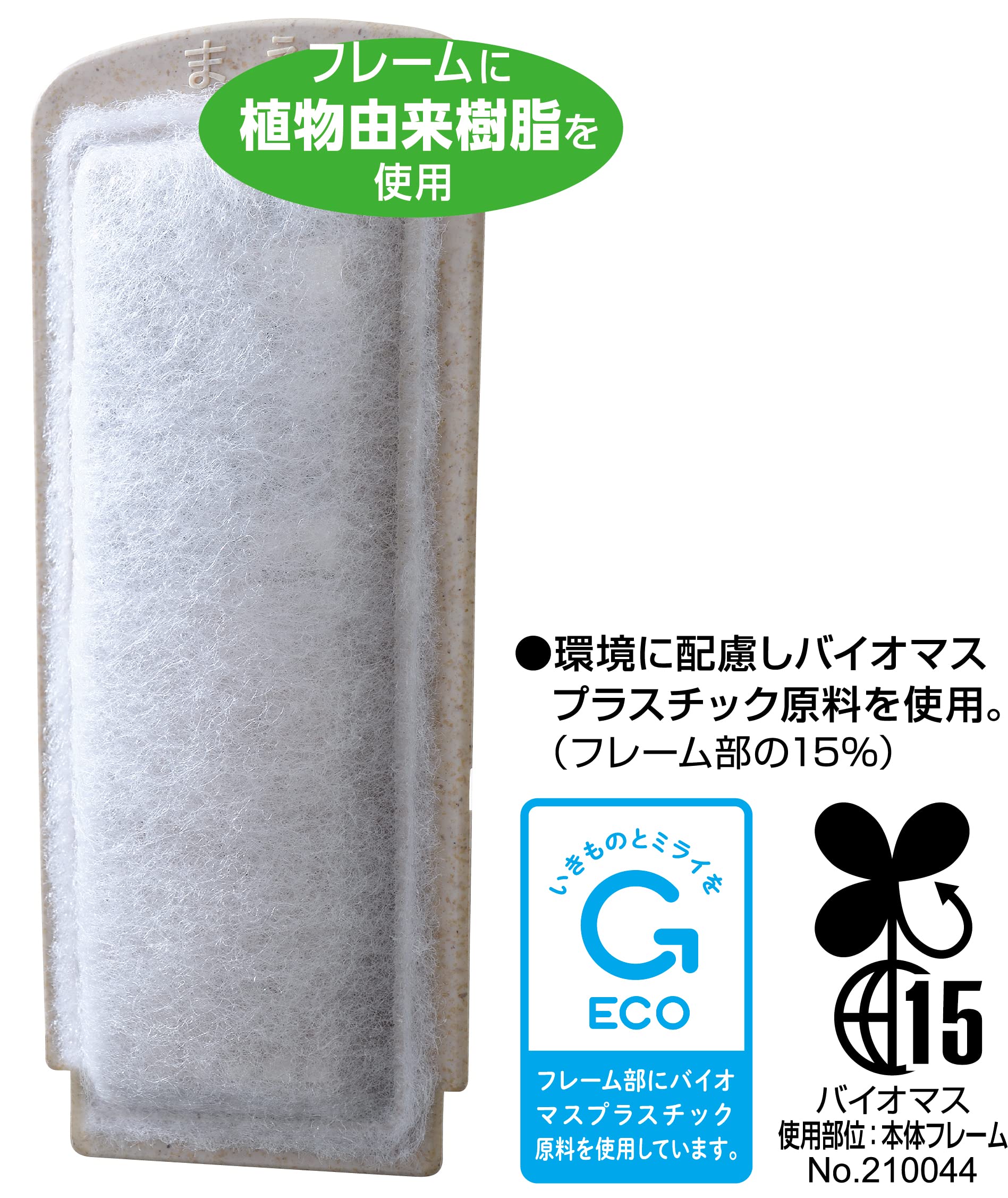 汚れを分解+水質変化を抑える バクテリア繁殖ろ過材 ウールマット+pH調整成分 フレームに植物由来樹脂を使用。