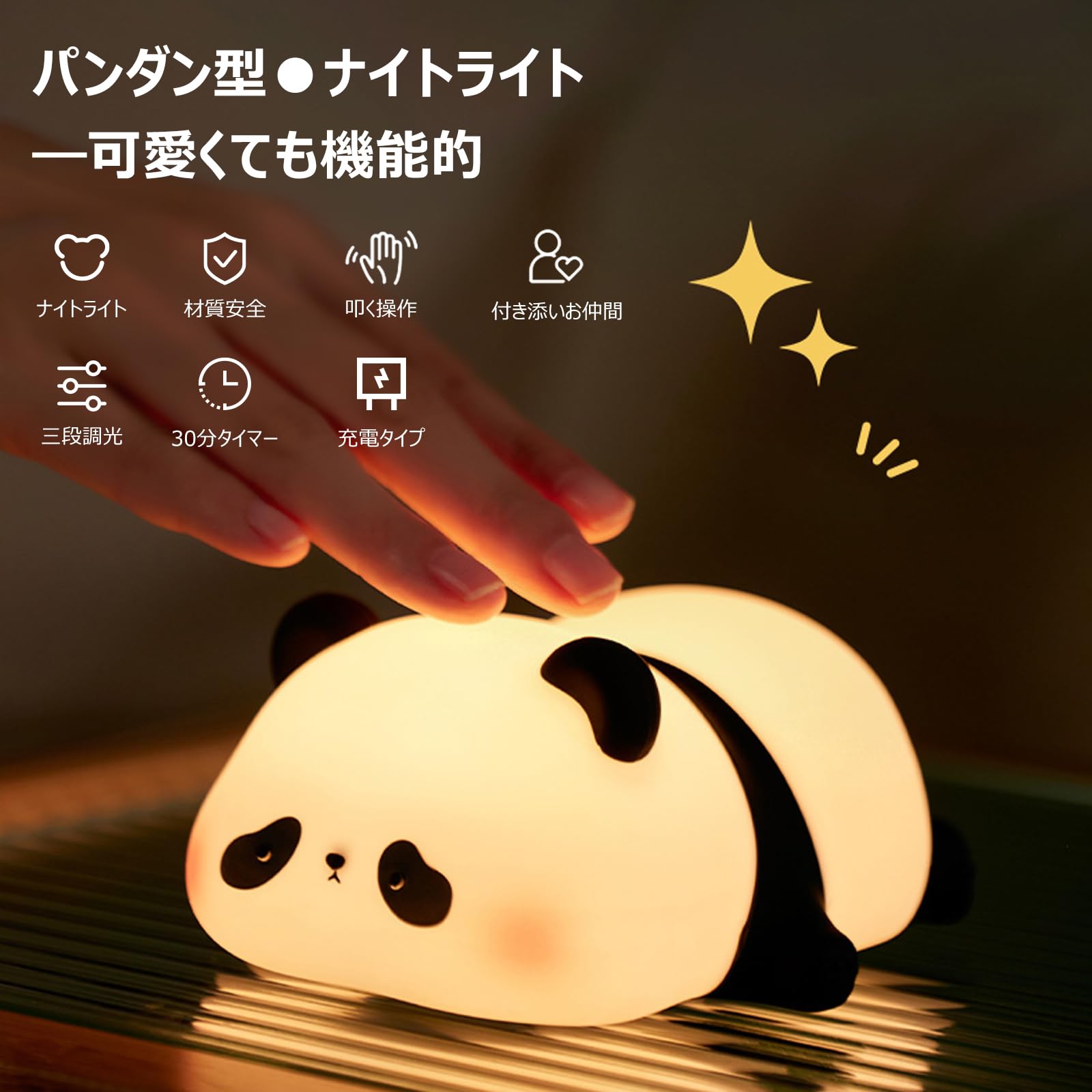 AmmToo パンダ型 LEDナイトライト 充電式 調光機能 30分タイマー付き(授乳/寝室/雰囲気照明用)プニプニ柔軟素材 おしゃれでかわいい熊型デザイン 目に優しい常夜灯【ベッドサイドランプ テーブルライト 子供部屋 インテリア 出産祝い クリスマス 誕生日プレゼントに最適】
