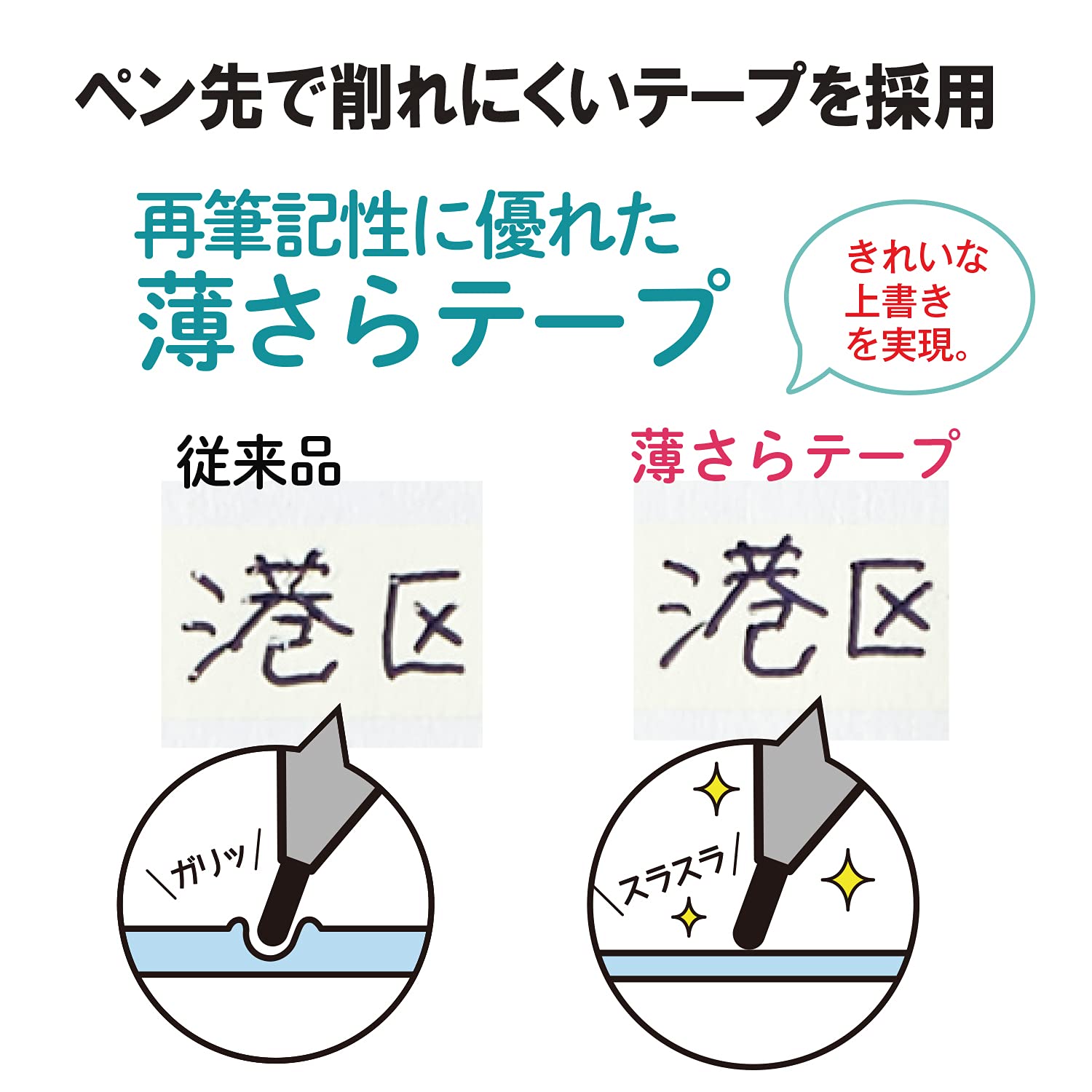 ・ペン先で削れにくい『薄さらテープ』を採用、さらさらときれいに上書き