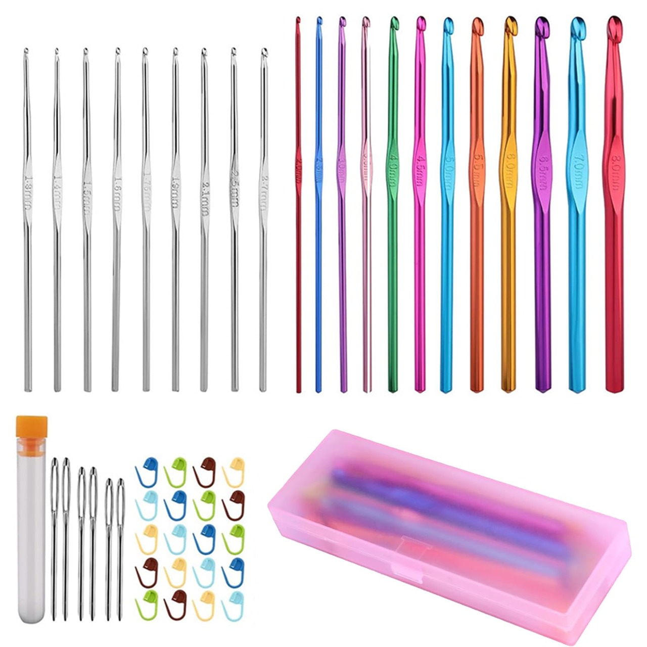 アフガン 編み針 かぎ針 21本入 カラフル レース針 49点セット編み針 編み棒 アルミ製 アルミニウムフック 編み物道具 DIY 手芸 セーター マフラー 帽子 ニット (21点編み針セット)