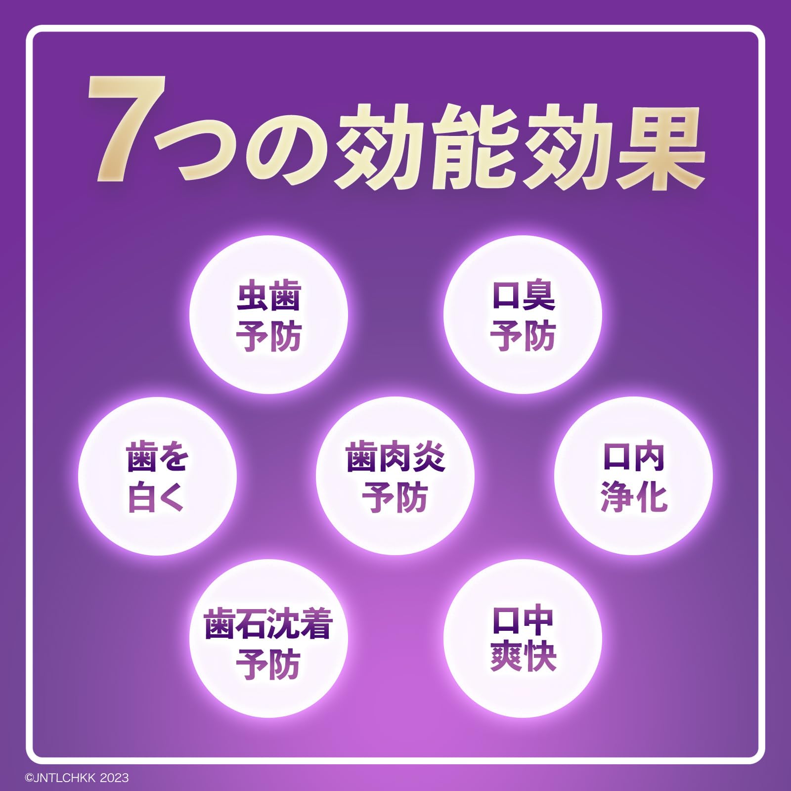 ●新たに虫歯への効果を加え、口臭から歯肉炎、着色汚れ、歯石、ネバつき、口内の不快感まであらゆるお口のトラブルをケア。