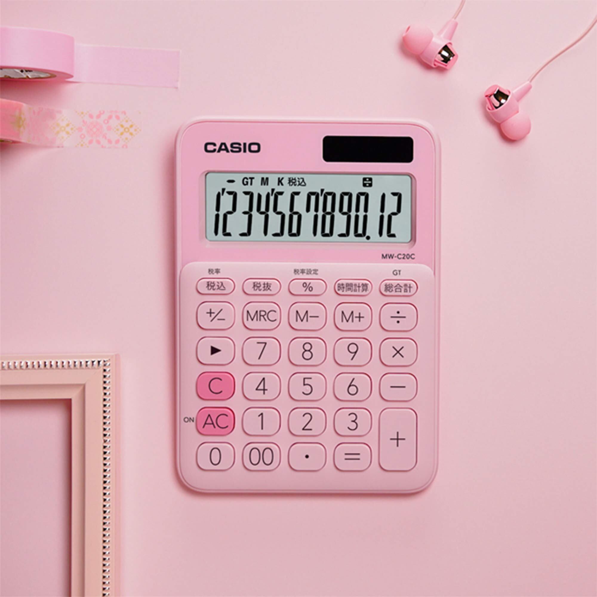 カシオ カラフル電卓 ペールピンク 12桁 ミニジャストタイプ MW-C20C-PK-N