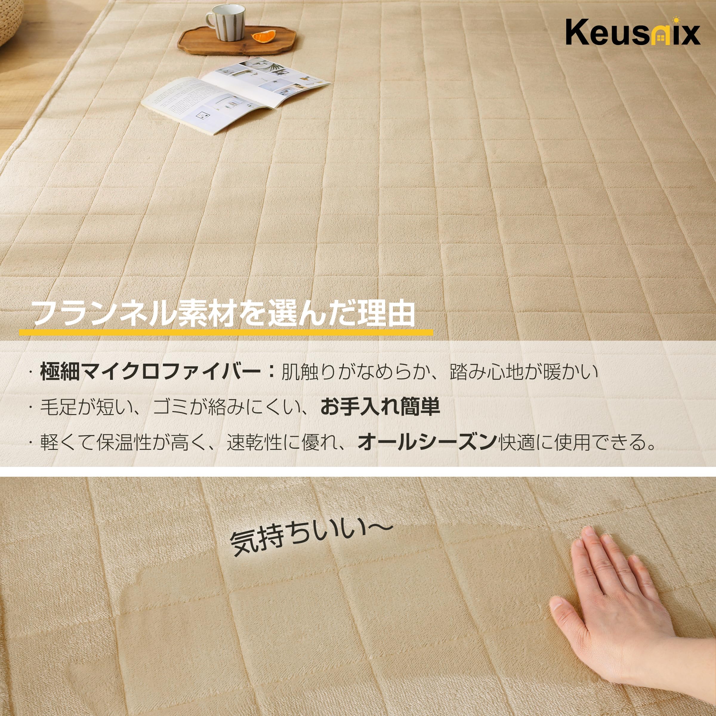 Keusnix ラグ カーペット キルトラグ 洗える ラグマット 3畳 185×235cm 絨毯 オールシーズン 滑り止め付き 抗菌防臭 ふわふわ肌触り フランネルラグ 床暖房 ホットカーペット対応 無地 ベージュ