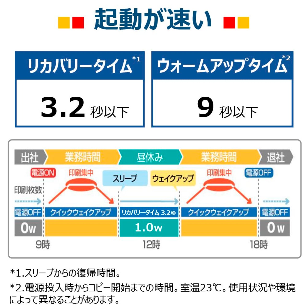 A4モノクロ対応、連続複写速度(A4片面)29枚/分、給紙容量(標準150枚)、インターフェイスUSB2.0・有線LAN・無線LAN、両面印刷、ADF片面読取