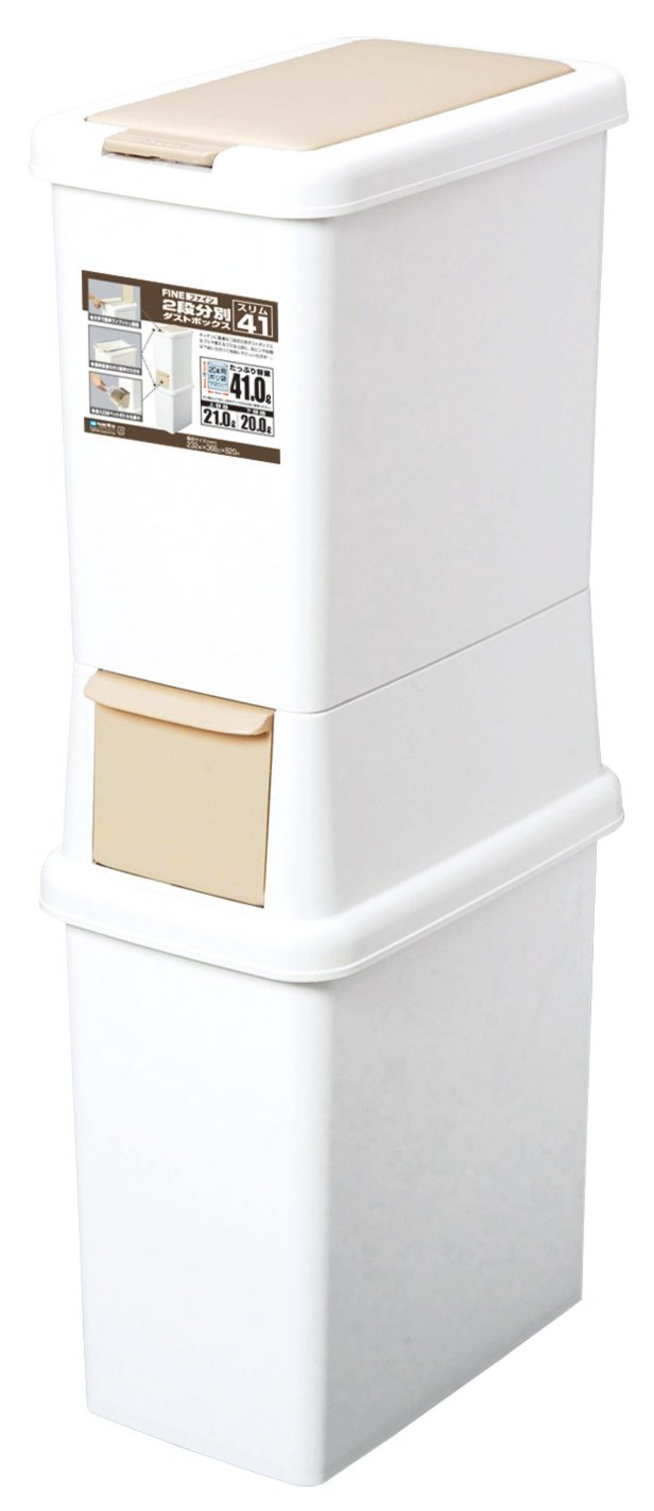 サンコープラスチック ゴミ箱 2段分別スリム 41L ライトベージュ