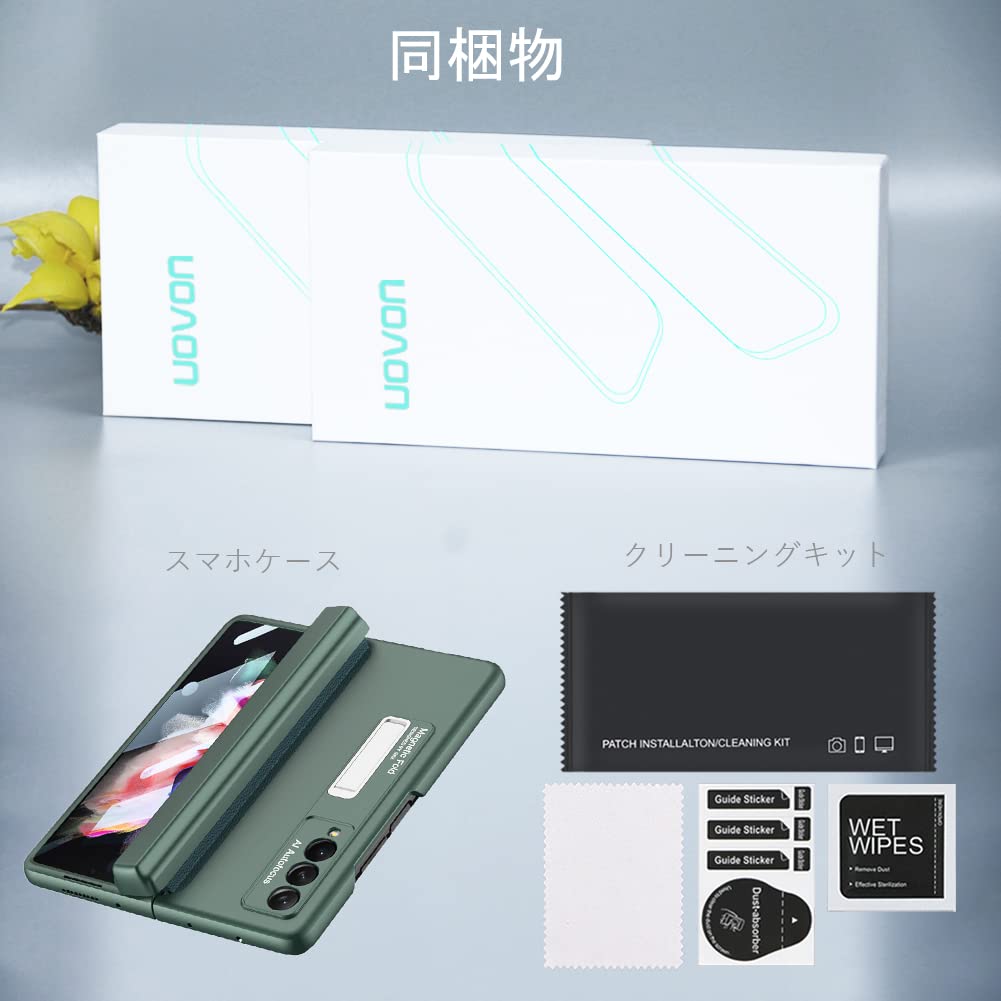 Galaxy Z Fold 3 ケース Sペン收纳 Samsung ギャラクシーZ フォールド3 5G SC-55B / SCG11 用 カバー ガラスフィルム付き Uovon スマホケース ヒンジ保護 fold3 携帯ケース スタンド付き 全面保護 軽量 薄型 · ブラック