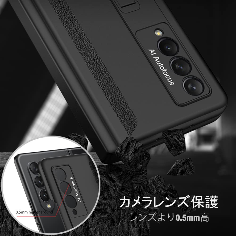 Galaxy Z Fold 3 ケース Sペン收纳 Samsung ギャラクシーZ フォールド3 5G SC-55B / SCG11 用 カバー ガラスフィルム付き Uovon スマホケース ヒンジ保護 fold3 携帯ケース スタンド付き 全面保護 軽量 薄型 · ブラック | geisha Cat*