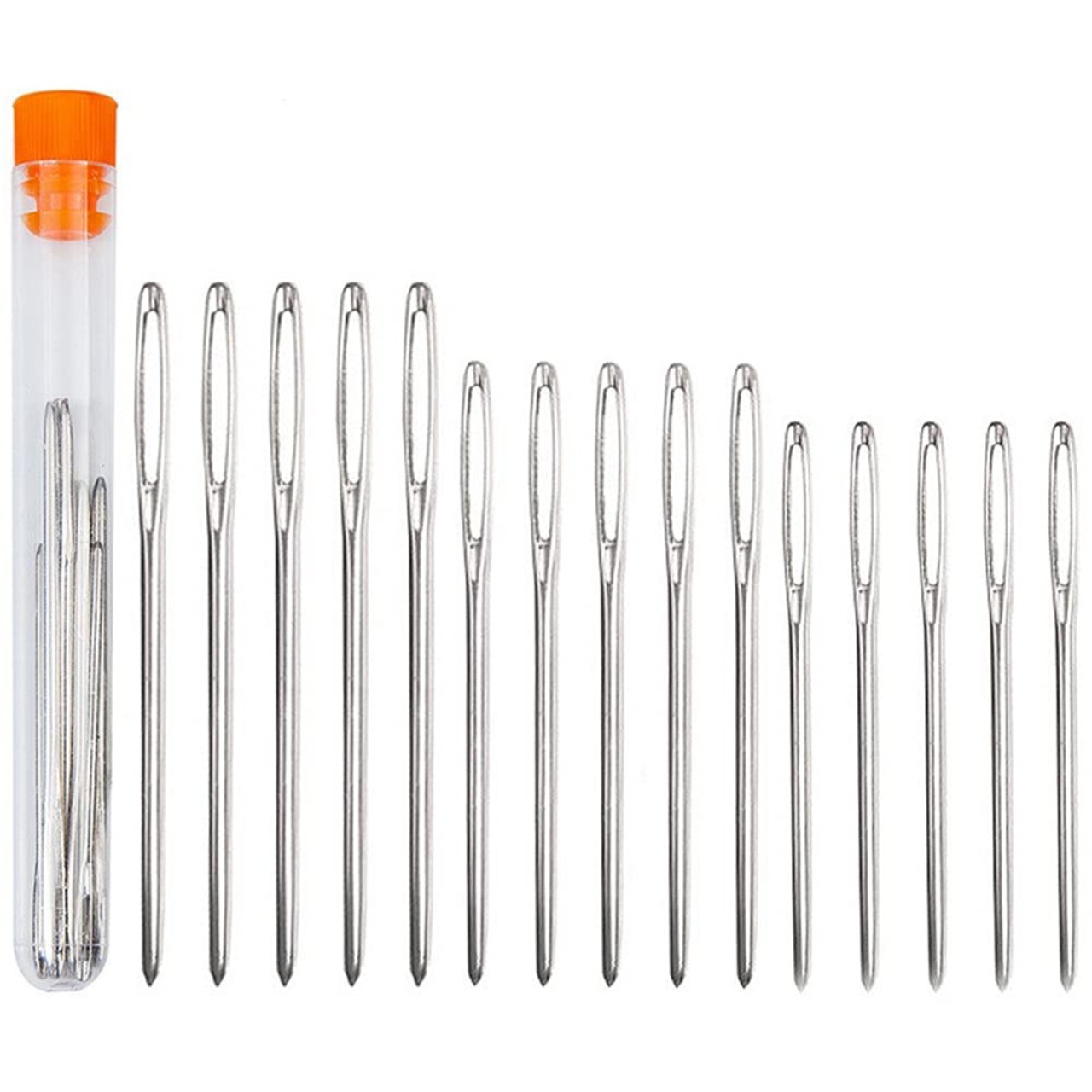 手縫い針 丸針 15本セット 手縫針 レザークラフト用針 縫い針 革用針 刺しゅう針 毛糸編み フェルト針 厚地縫い用針 手芸 DIY 裁縫 収納容器付き