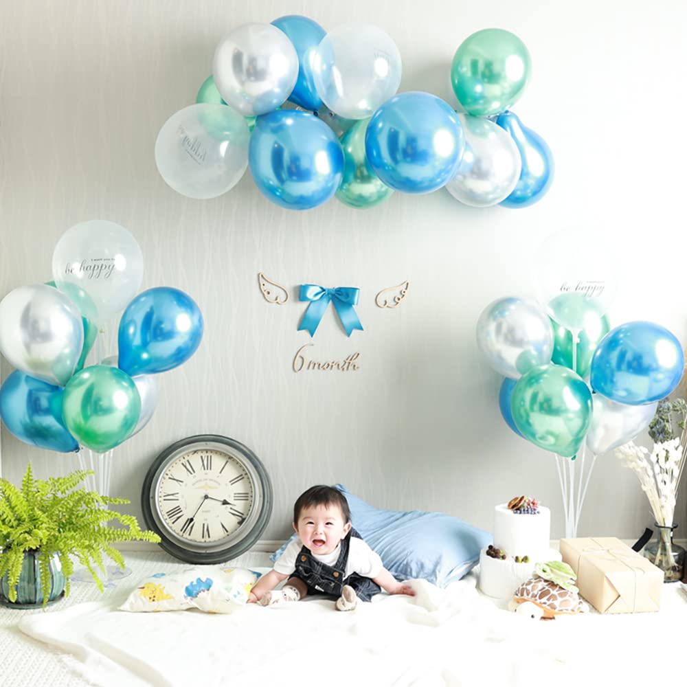 [BON PRODUIT]バースデー バルーン 風船 誕生日 男の子 女の子 1歳 2歳 28枚セット [24cm~35cm] (ブルーメタリック)