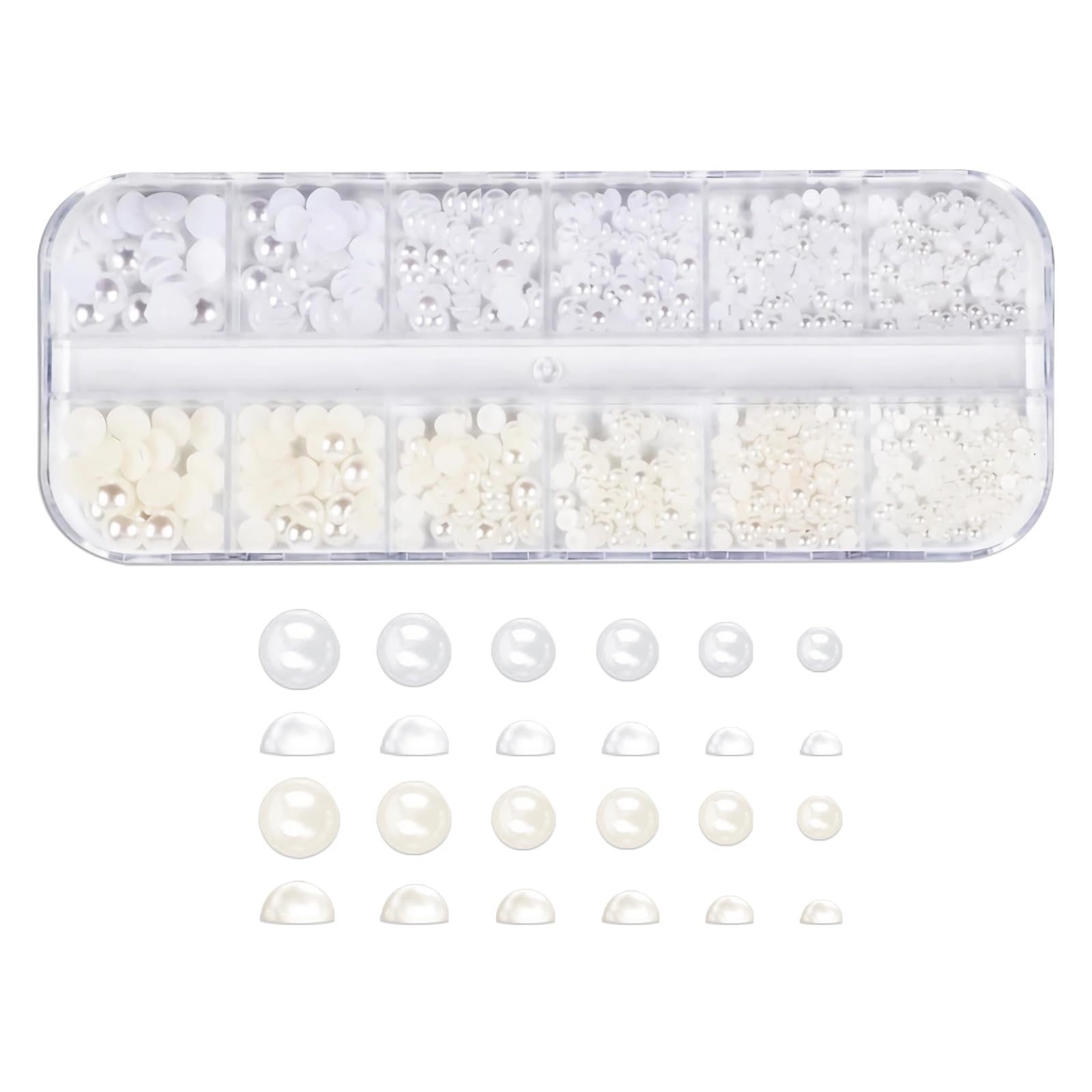 【LEISURE CLUB】 ネイル パール 半円パール 6サイズ 半丸 ホワイト 3Dネイルデザイン デコレーション ジェルネイルレジン用 収納ケース付き ハンドメイド 手芸 クラフト DIY 素材(ホワイト+ベージュ)
