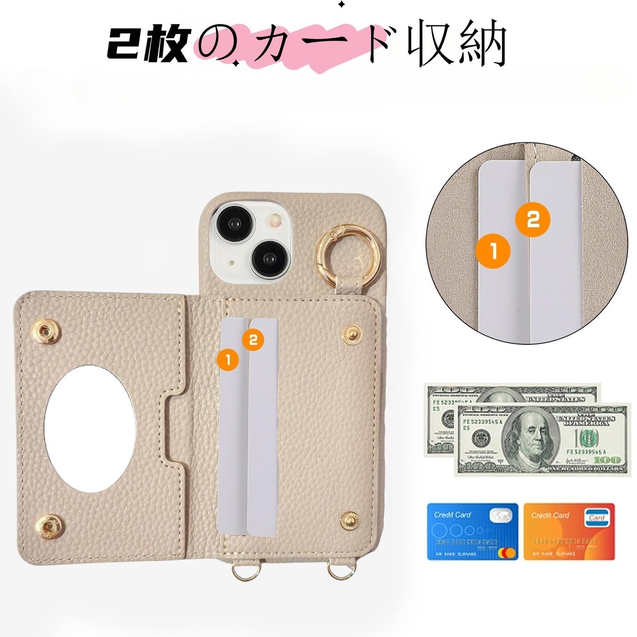 【ショルダータイプ + リング付き +ミラー+カードケース】背面 落下防止 リング、ストラップ、カード入れ、カードが3枚入りますが(横に差し込む3枚入り) 交通ICカードやポイントカードなどを入れることができます。取り外しが簡単にできるところも使い易いと xperia5iv スマホケース ショルダー
