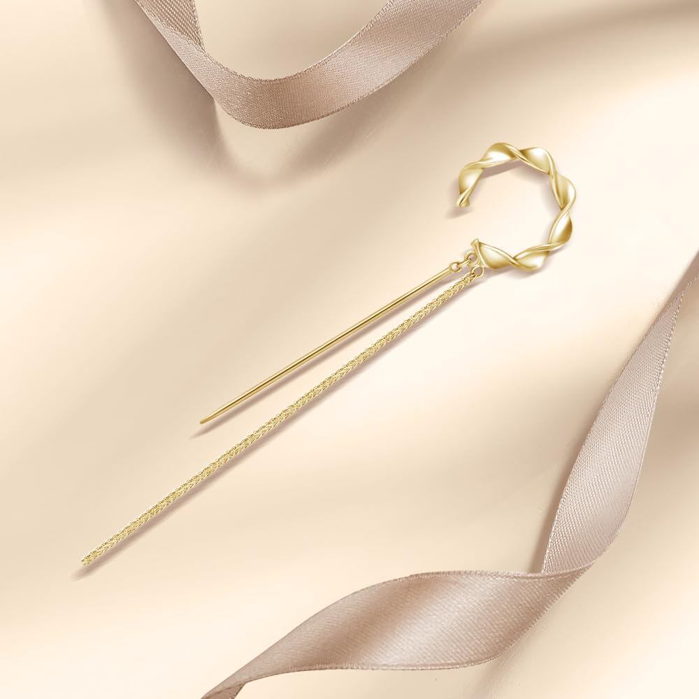 揺れ動く: このイヤーカフは、長いタッセルと細いバーが下に付いており、歩くたびに揺れ動きます。優雅でスタイリッシュ、軽やかで存在感があります