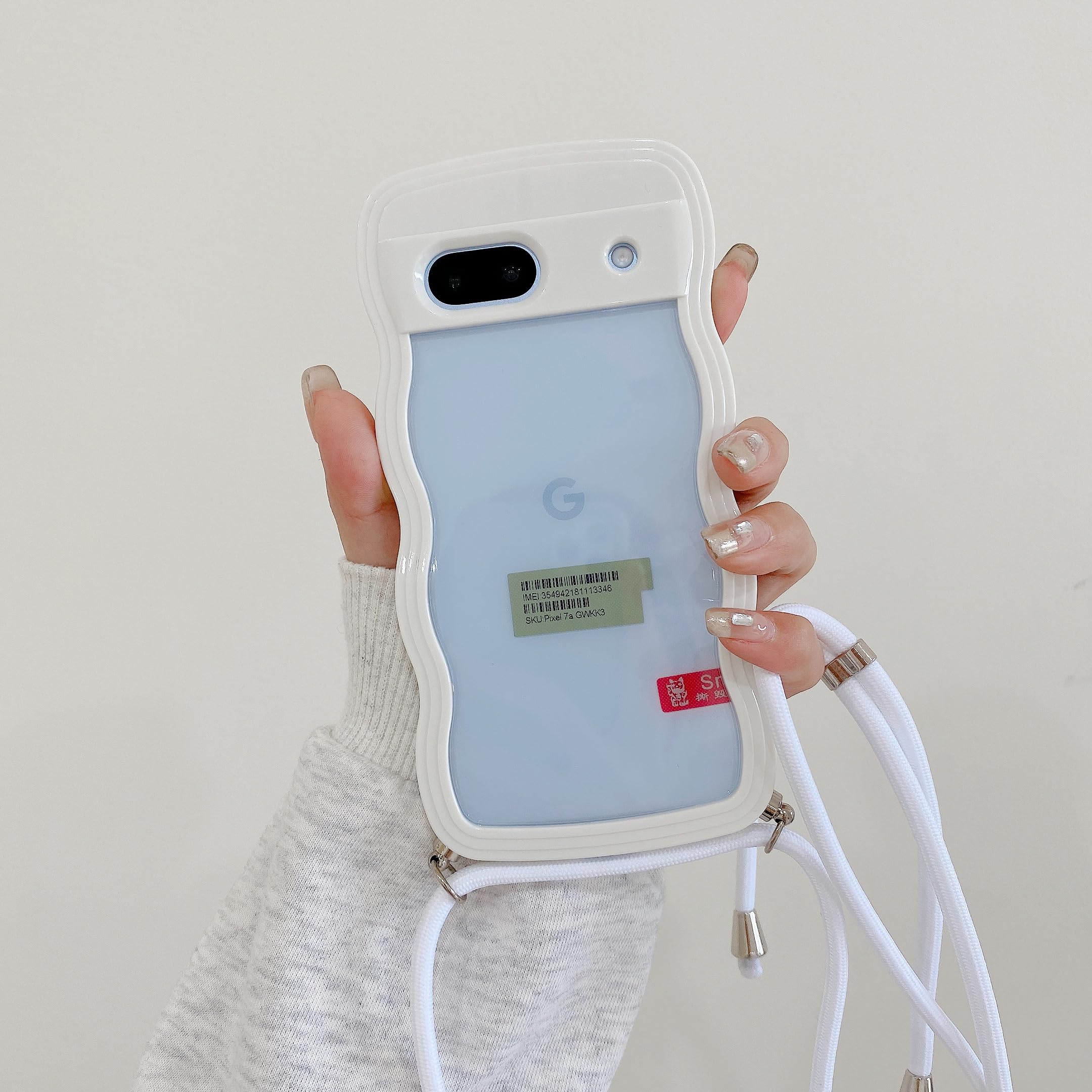 HILEGENER Pixel 7A かわいい クリアケース 波状フレームクリア ストラップ ショルダー 耐衝撃 グーグル ピクセル7A 6.1インチカバー 肩掛け 斜めかけ 縄掛けケース【長さ調整可能縄掛け付き】ウェーブ デザイン スマホカバー 韓国 可愛い 女子向け 人気 落下防止 紐付き 織りスト ネックストラップ ショルダー (Pixel 7A-ホワイト)