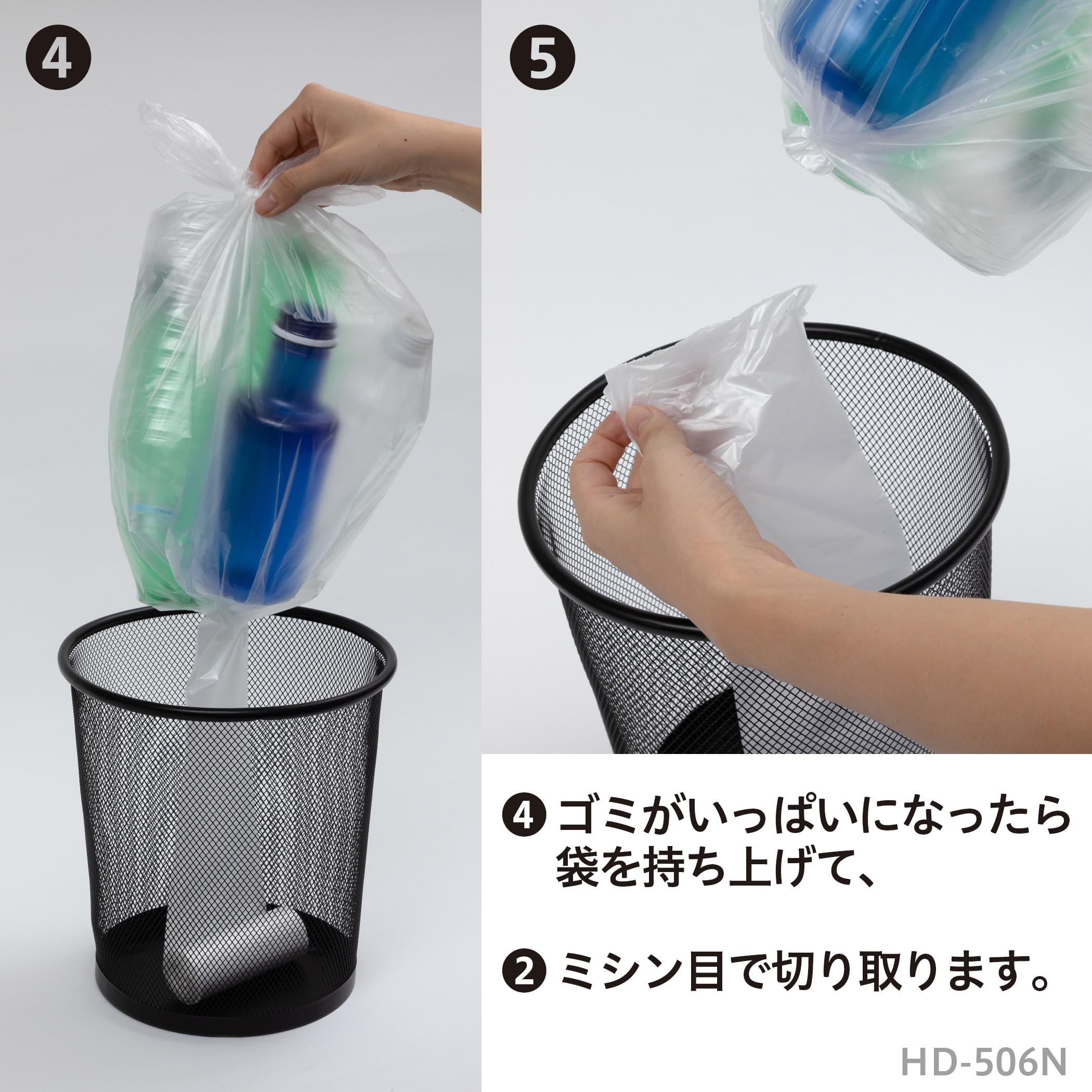 ●ロールから引き出してゴミ箱に装着できるので手軽にお使い頂けます。袋の取替がラクにできます。