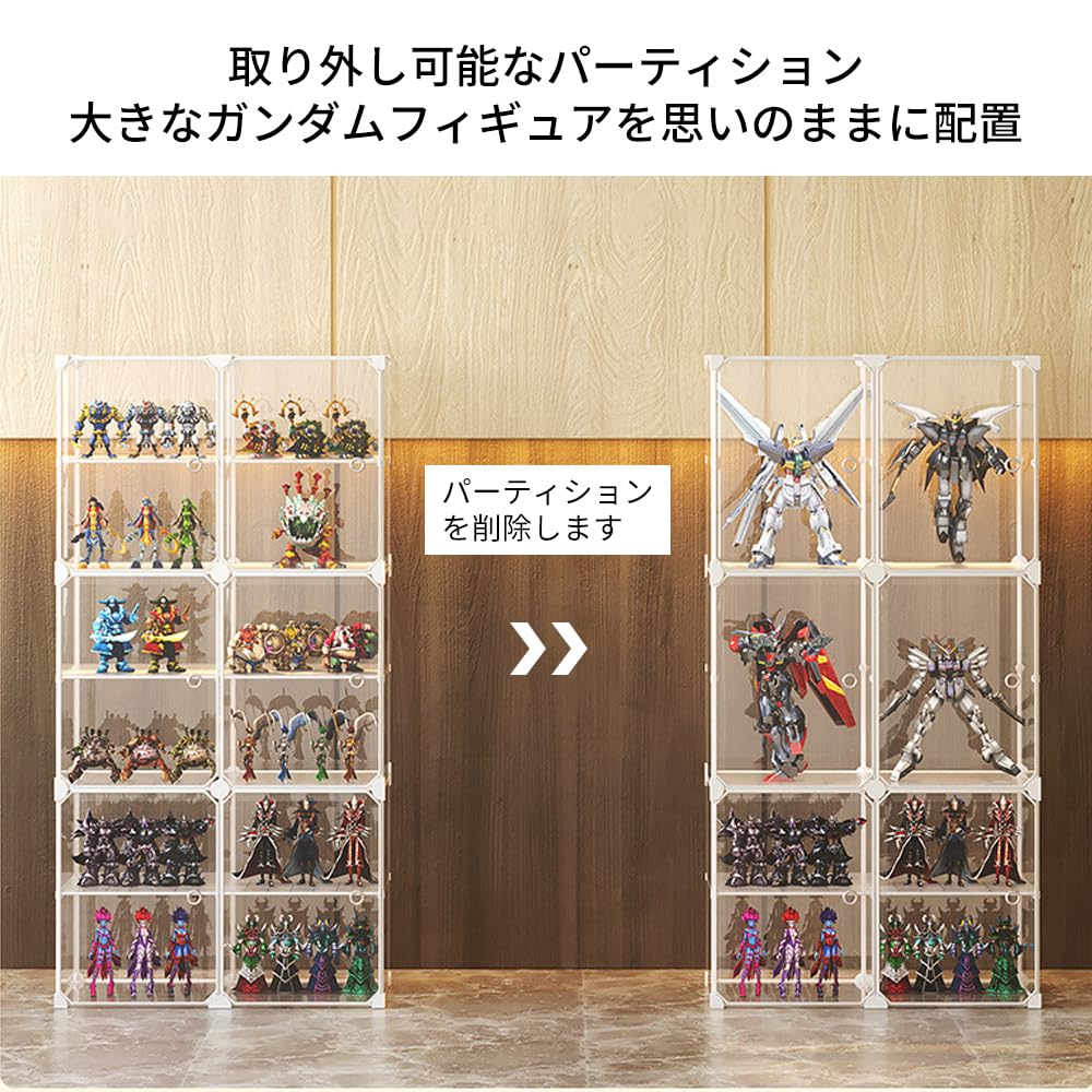 フィギュアケース コレクションケース ディスプレイラック フィギュアケース 棚 透明フィギュアケース 積み重ねる ぬいぐるみ ディスプレイケース プラモデル ケース 大容量 組み立て式 多用途 (1列2段)