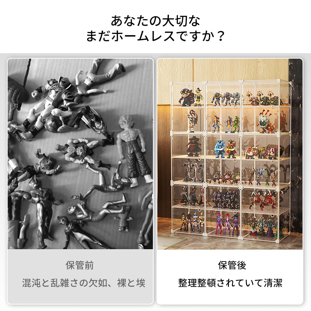 【多用途フィギュアケース】:多機能で用途の広いコレクションケースです。バッグ、靴、ファイル、生活用品、趣味道具などの収納から、おもちゃやフィギュアのディスプレイまで幅広く活用できます。
