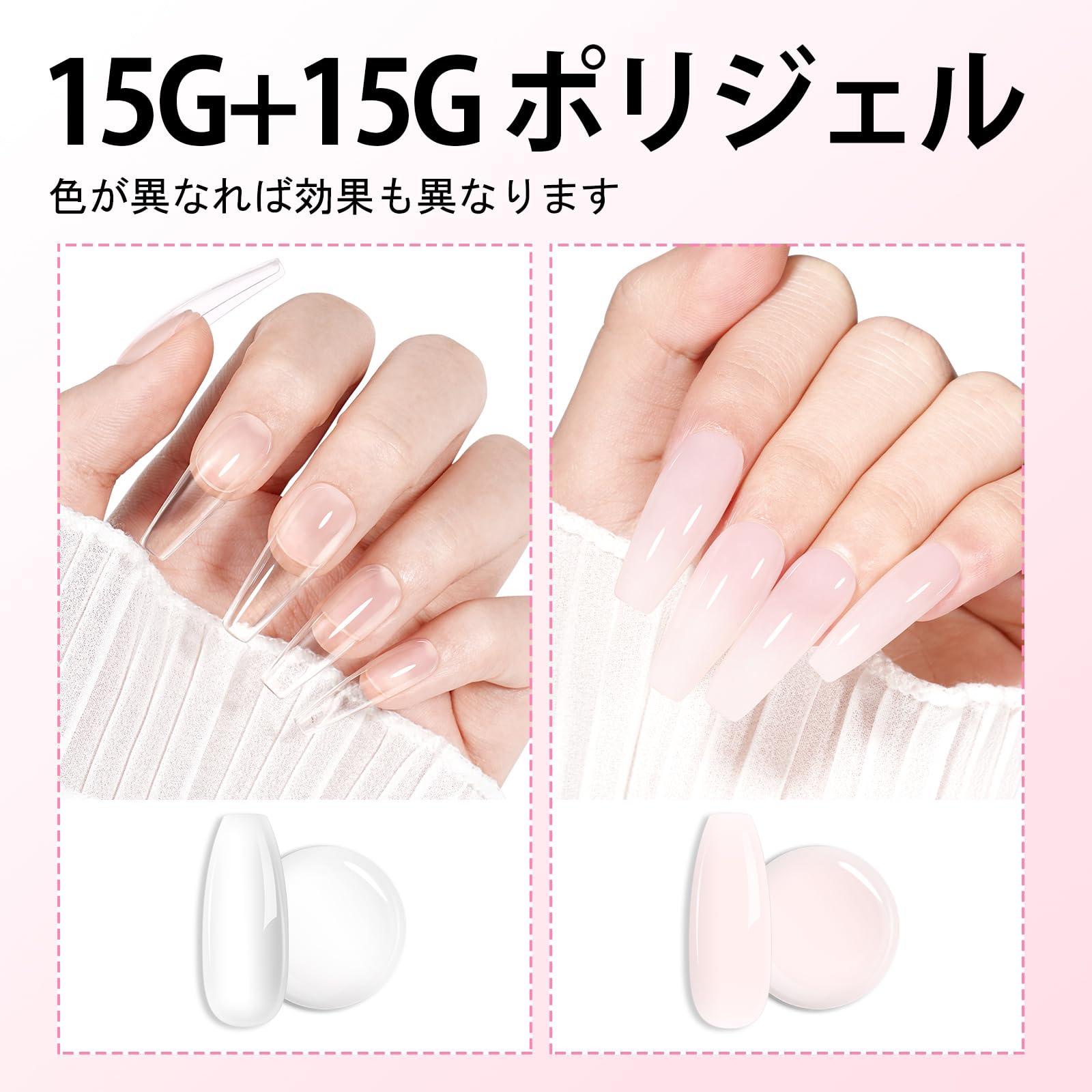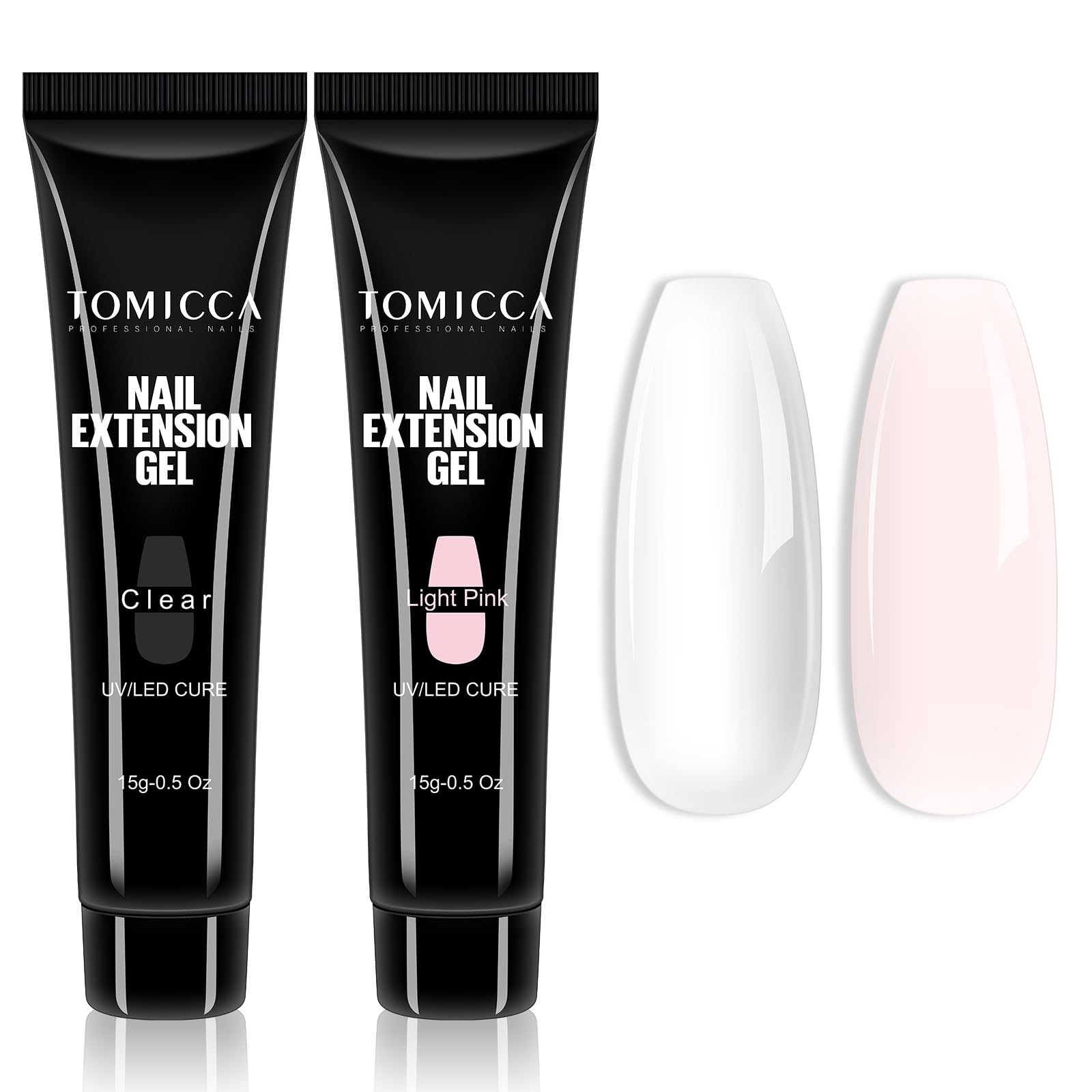 TOMICCA ポリジェル 長さ出しジェル ジェルネイル 長さ出し 2本 15g UV/LEDライト対応 初心者用 (クリア +ライトピンク)