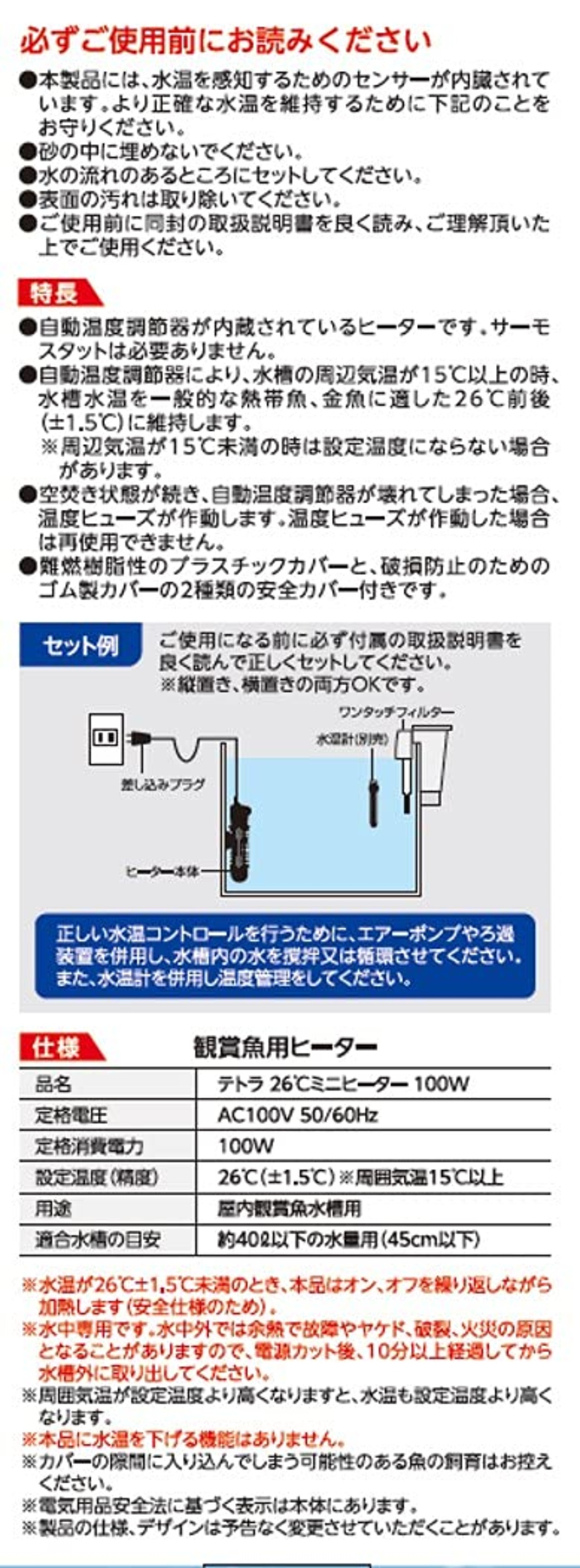 テトラ (Tetra) 水槽 26℃ミニヒーター 100W 安全カバー付 熱帯魚 金魚 メダカ アクアリウム