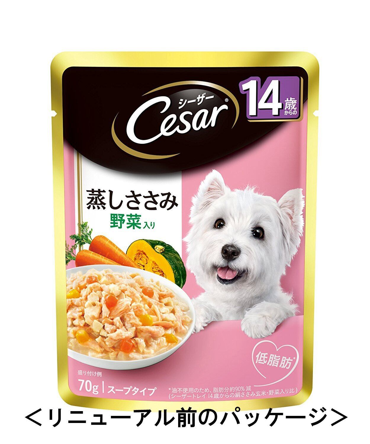 シーザー パウチ シニア犬用 14歳からの 蒸しささみ 野菜入り 70g×16個 (まとめ買い) [ドッグフード・ウェット]